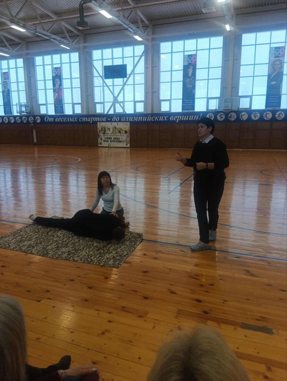 Теоретические занятия провела Сухарева Елена Егоровна, начальник учебно-методического отдела территориального центра медицины катастроф. Елена Егоровна рассказала об основных правилах оказания первой доврачебной помощи, а также обучила практическим навыкам оказания первой помощи с использованием жгутов, турникетов, подручных материалов, продемонстрировала правильный способ проведения сердечно-легочной реанимации. Все присутствующие смогли попрактиковаться в оказании первой помощи друг другу.