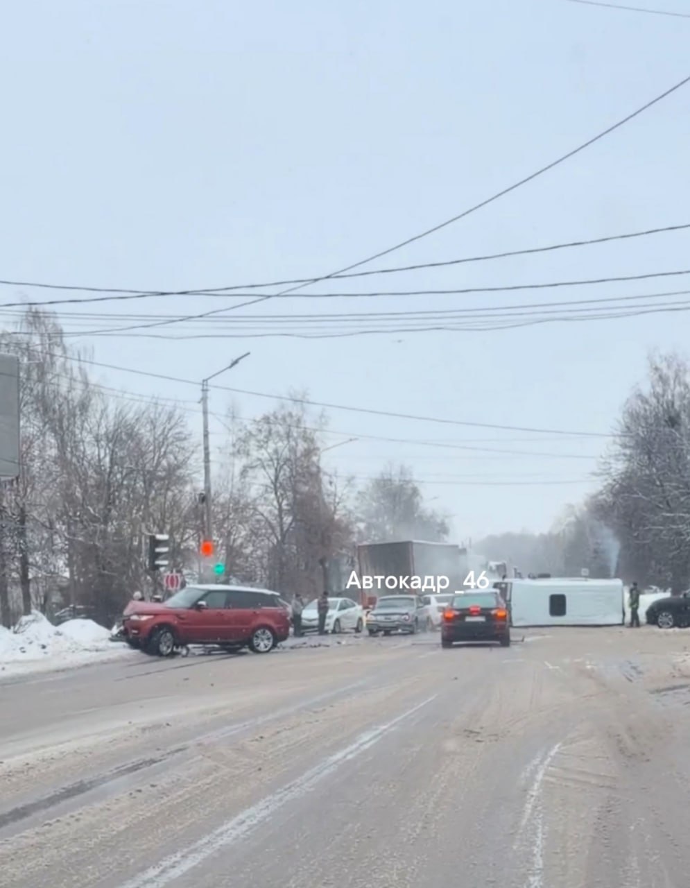 Там произошло массовое столкновение. По предварительным данным, столкнулись более трёх автомобилей. Очевидцы сообщают, что иномарка снесла маршрутку, от удара та перевернулась на крышу.