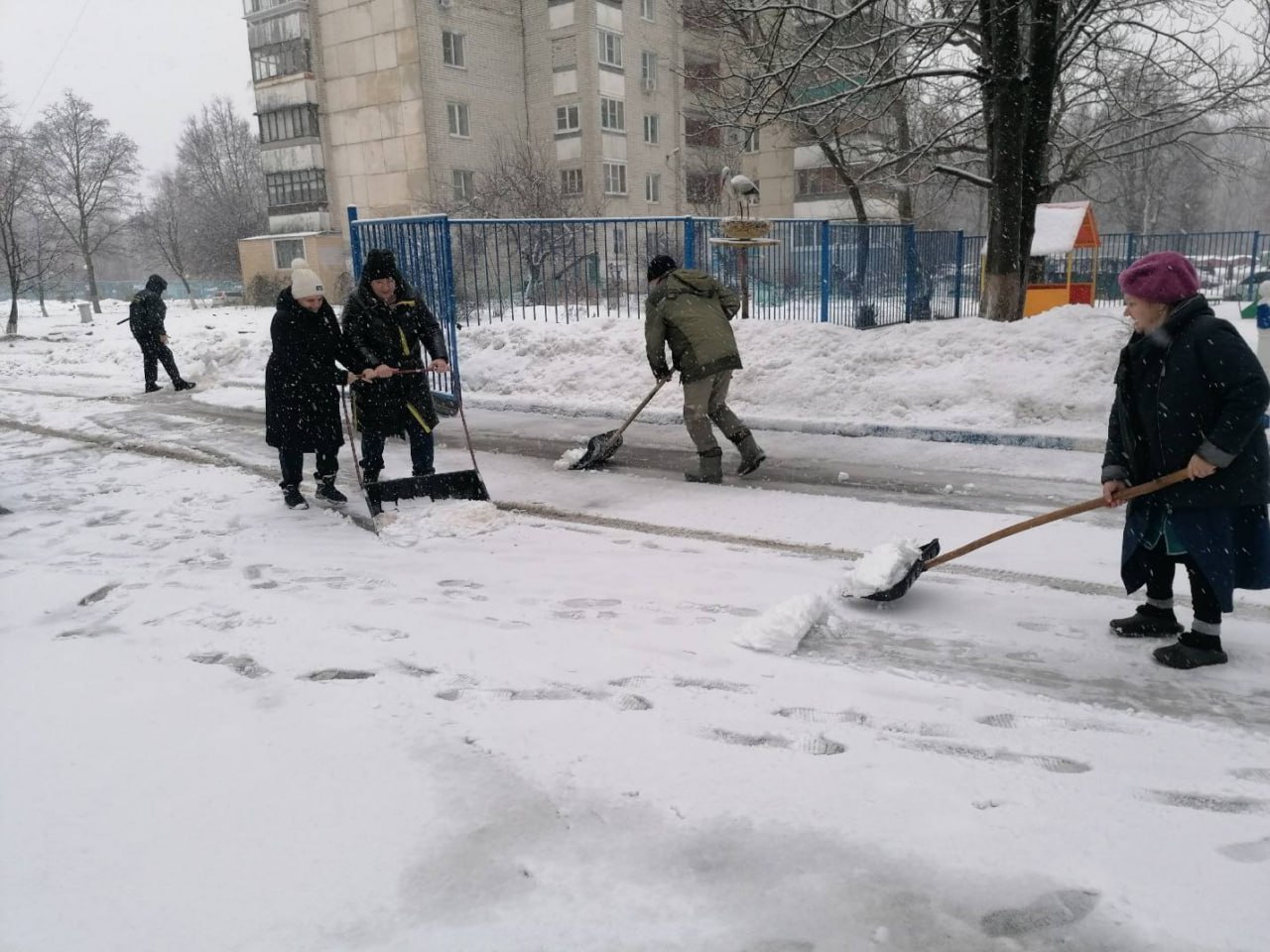 Педагоги, сотрудники и родители объединяются, чтобы очистить территории образовательных учреждений и прилегающие пространства от последствий снегопада.