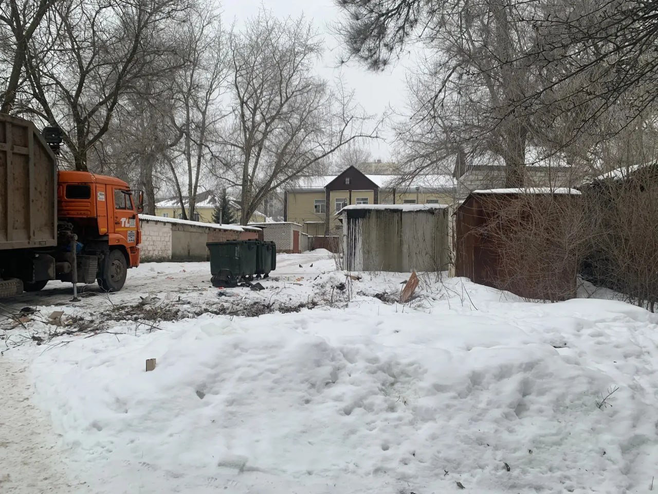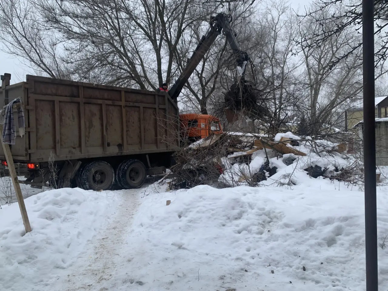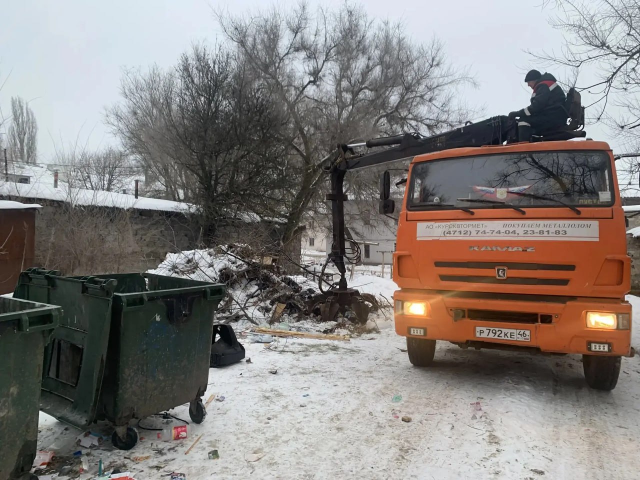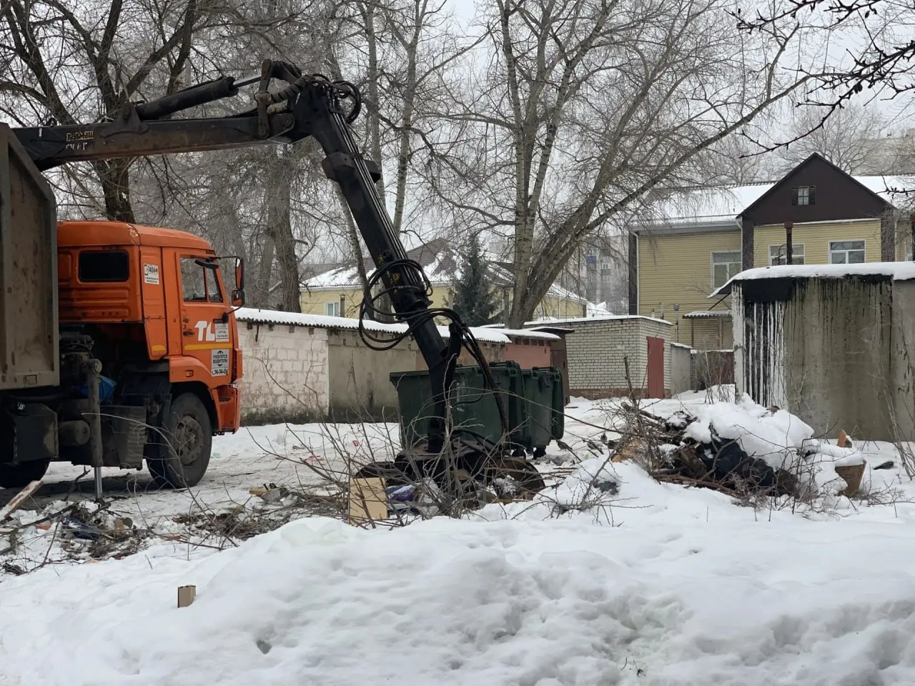 Администрация Сеймского округа организовала очистку территории возле контейнерной площадки на улице Пигорева, 15, от незаконных свалок древесных и растительных отходов.