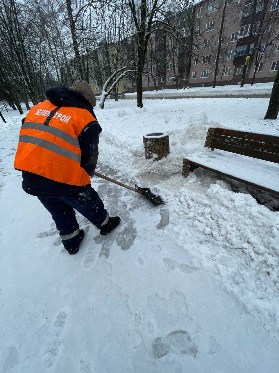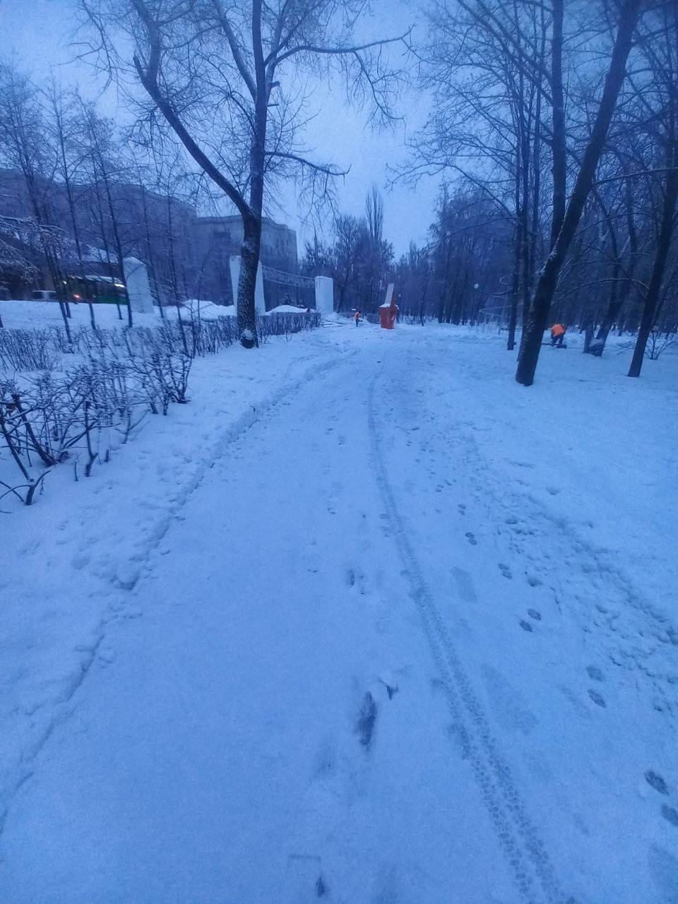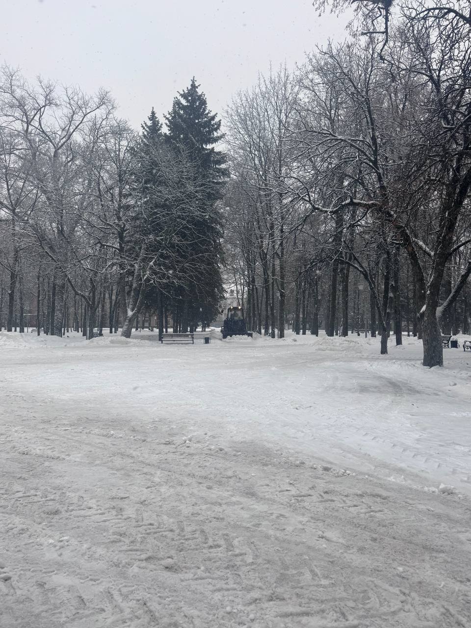 Подрядная организация, ответственная за парки, скверы и зоны отдыха, весь день убирает снег