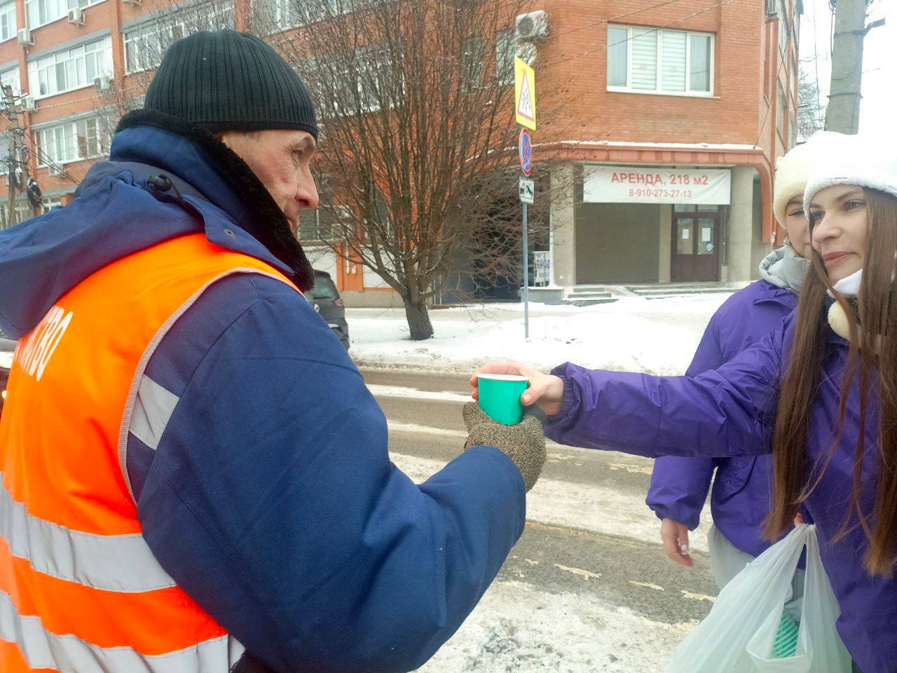В Курске волонтёры раздали горячий чай коммунальщикам