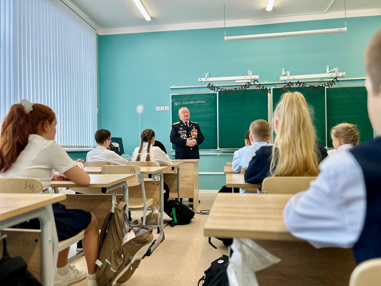 Для проведения открытых уроков в школу прибыли почетные гости: председатель совета ветеранов Центрального округа Александр Горяинов, председатель совета ветеранов военных профсоюзов Курской области Николай Марков, ветеран Тихоокеанского флота Александр Белоусов, майор в отставке, летчик, ветеран войны в Афганистане Сергей Писаревский, участник боев под Дебальцево и волонтер СВО Юрий Хохлов и другие.