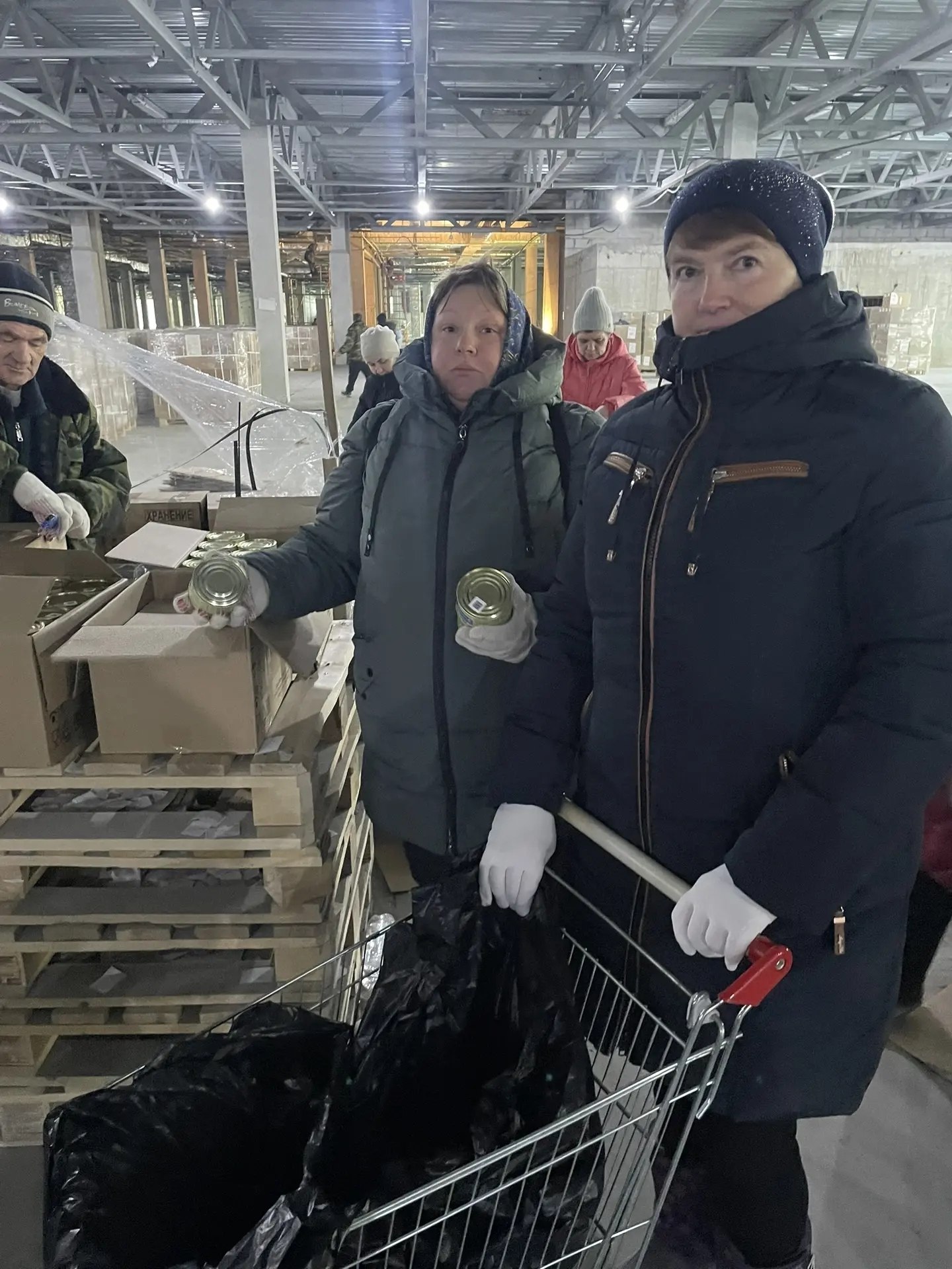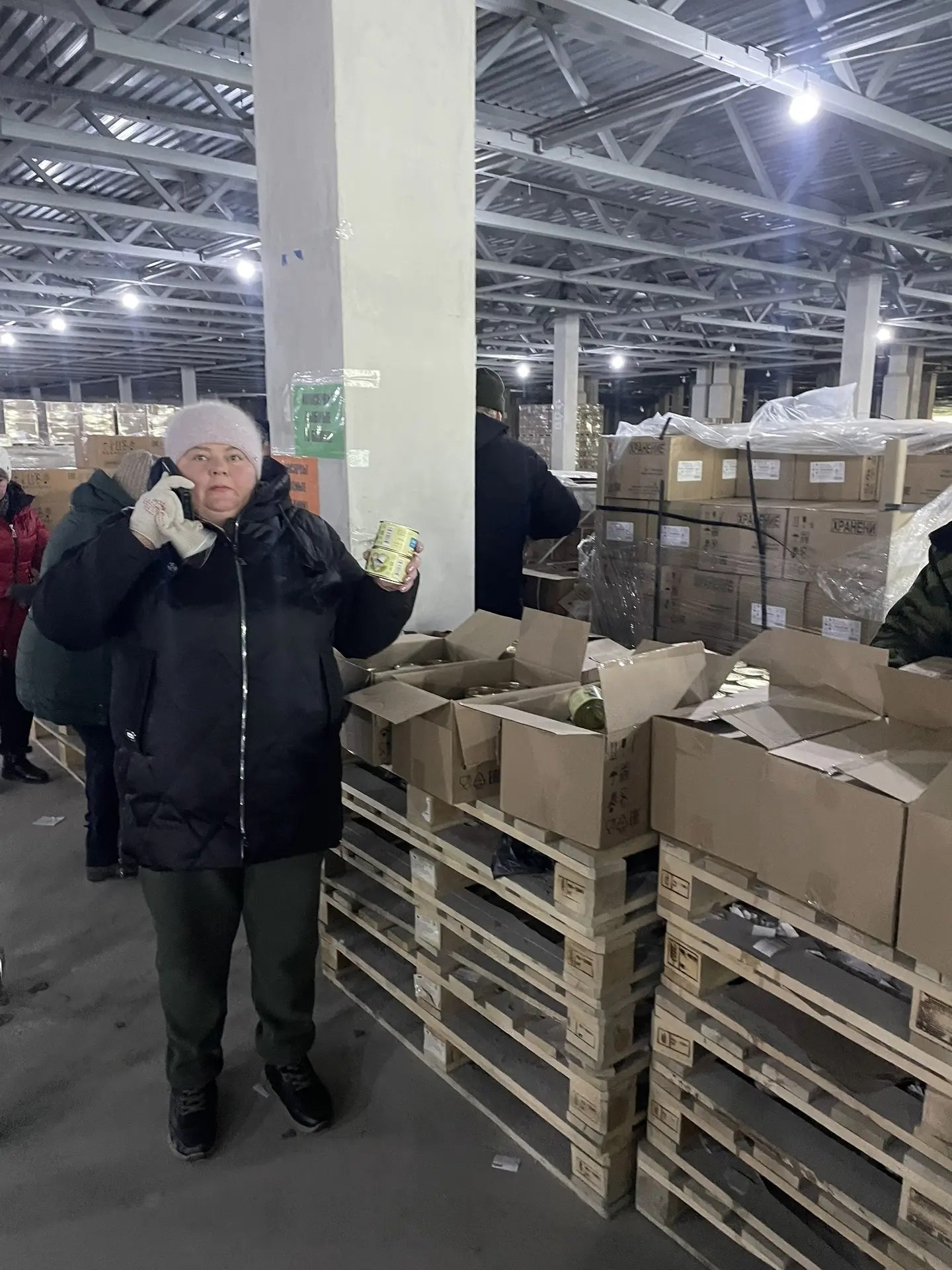Сплочённая команда волонтеров Льговского межрайонного комплексного центра социального облуживания населения продолжает трудиться на гуманитарном складе областного центра по распределению продовольственных товаров, фасовке продуктовых наборов для вынужденных переселенцев из приграничных районов Курской области.