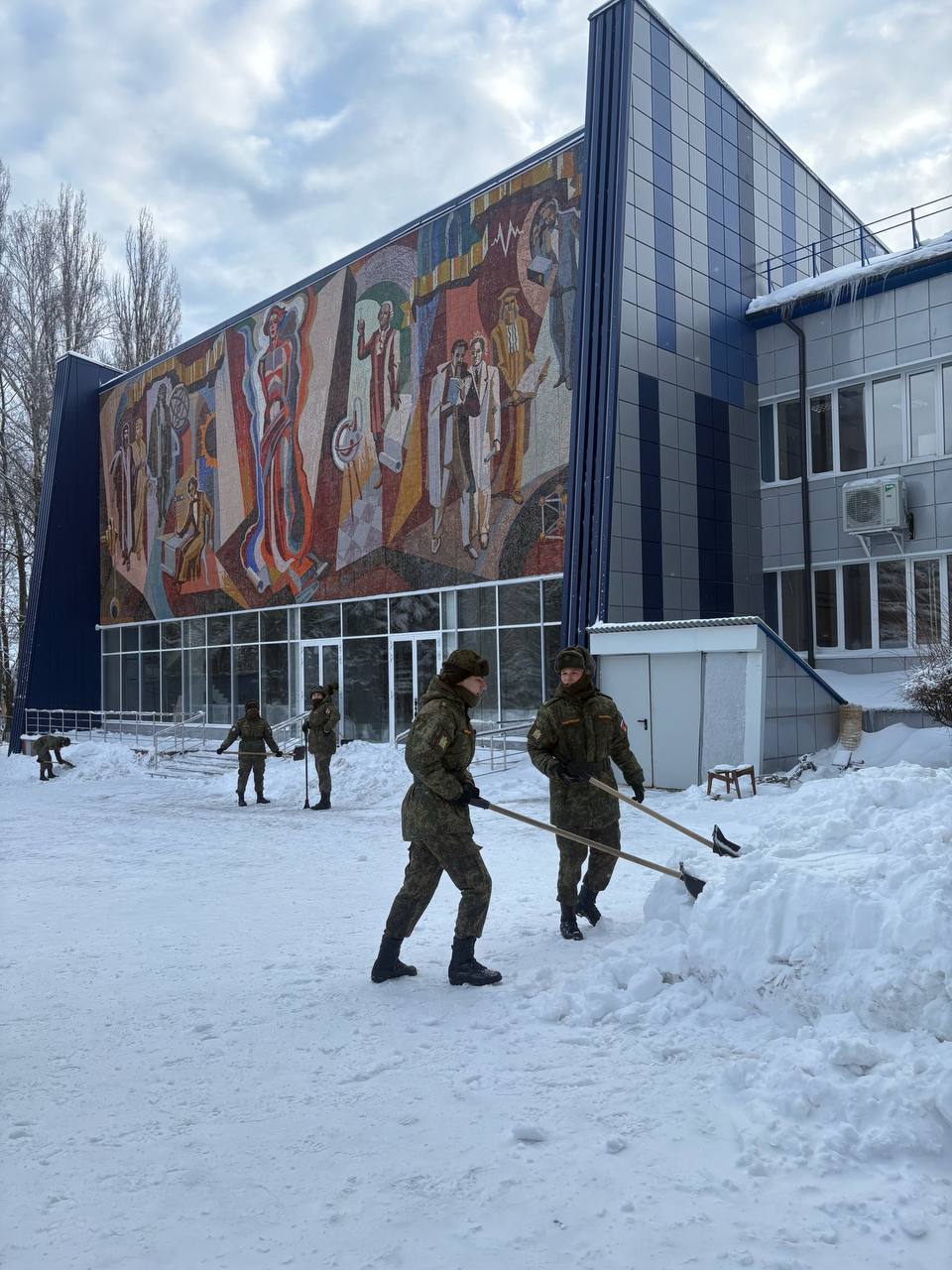 Город вышел на борьбу со снегом, который шел всю ночь. Территорию вуза очищают курсанты военного учебного центра ЮЗГУ. Мороз не помеха, спасибо ребятам за помощь!