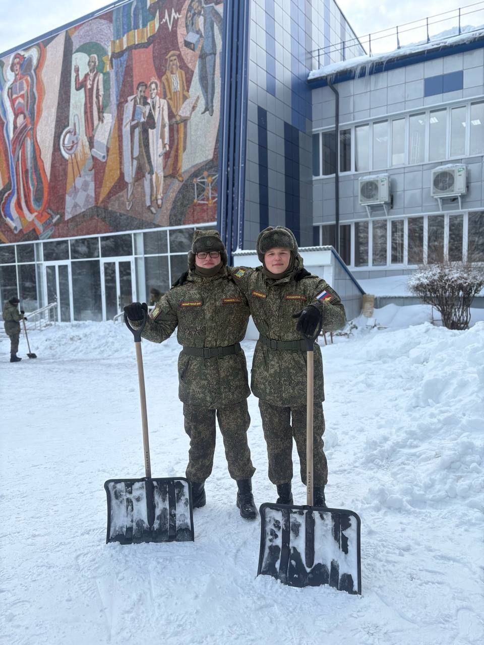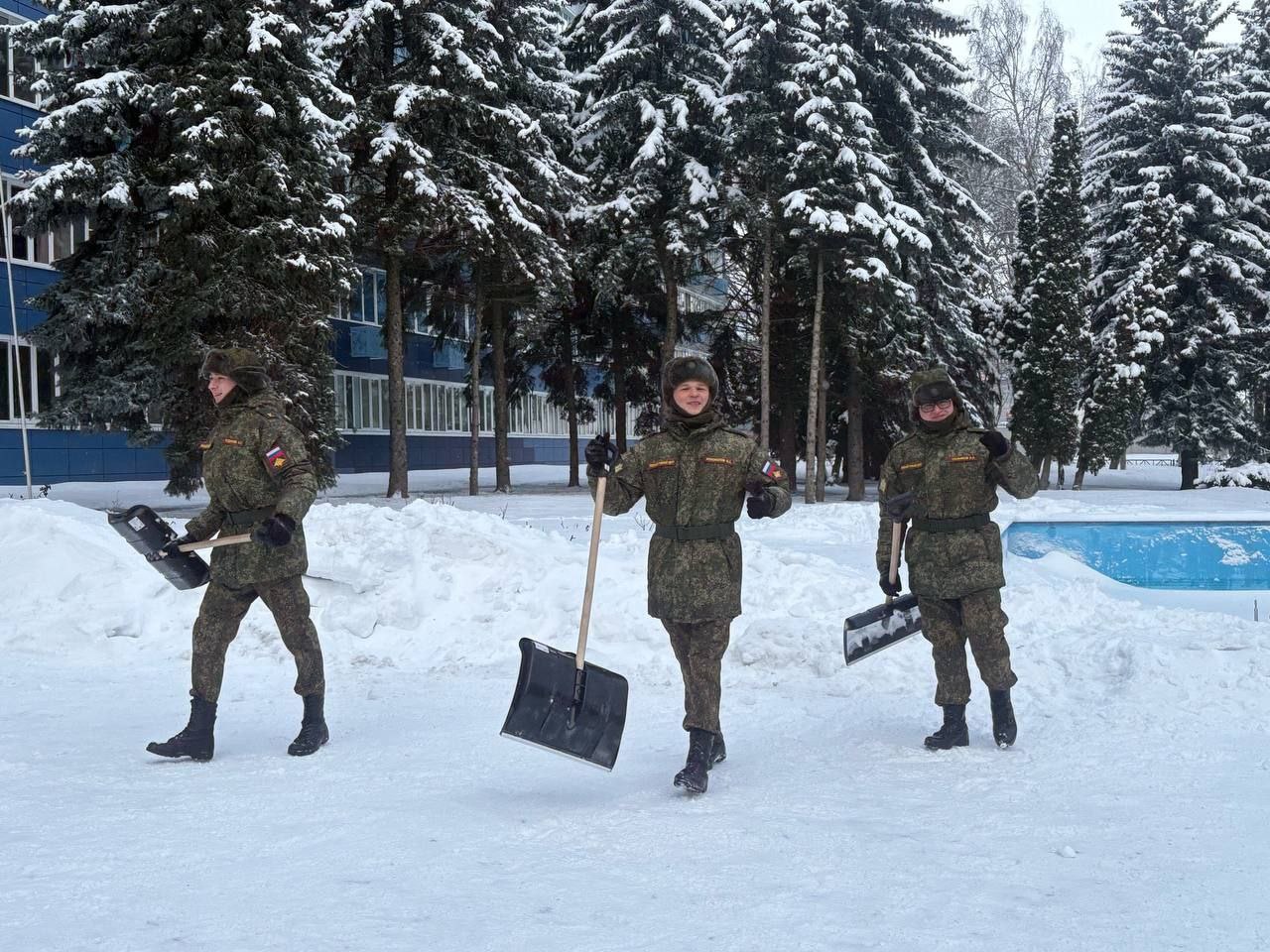 Курсанты ЮЗГУ помогают расчистить город от ночного снегопада