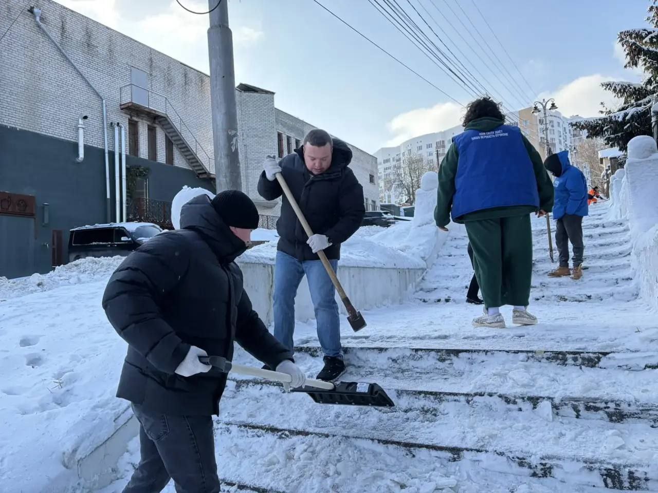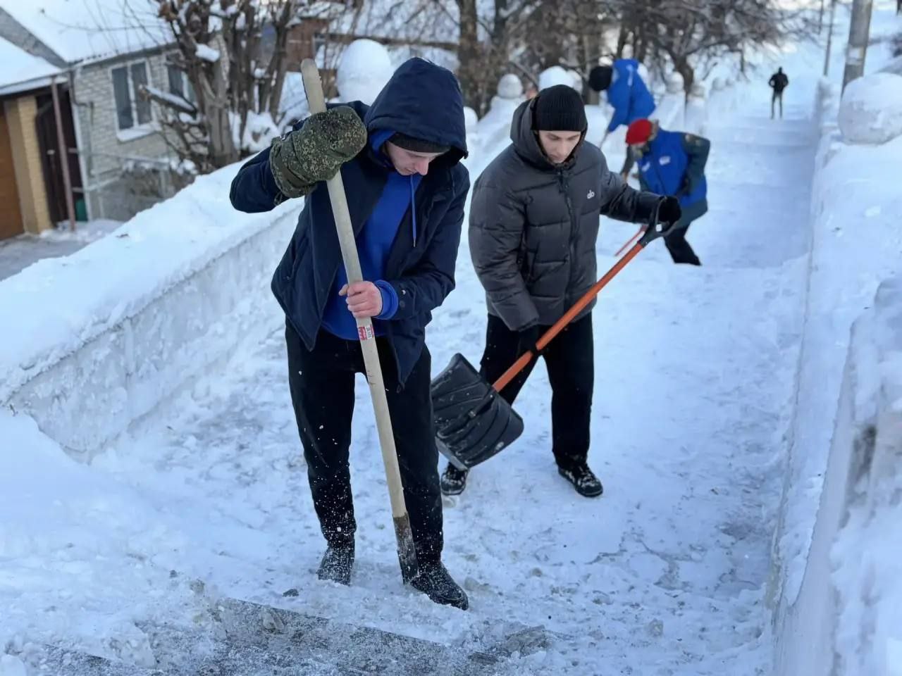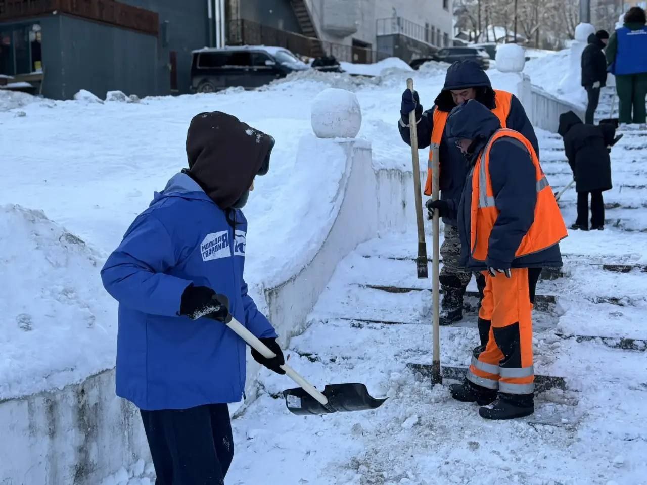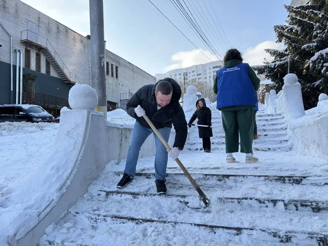 Сегодня молодогвардейцы, помогая дорожникам, приняли участие в расчистке ступенек на улице Мирной.