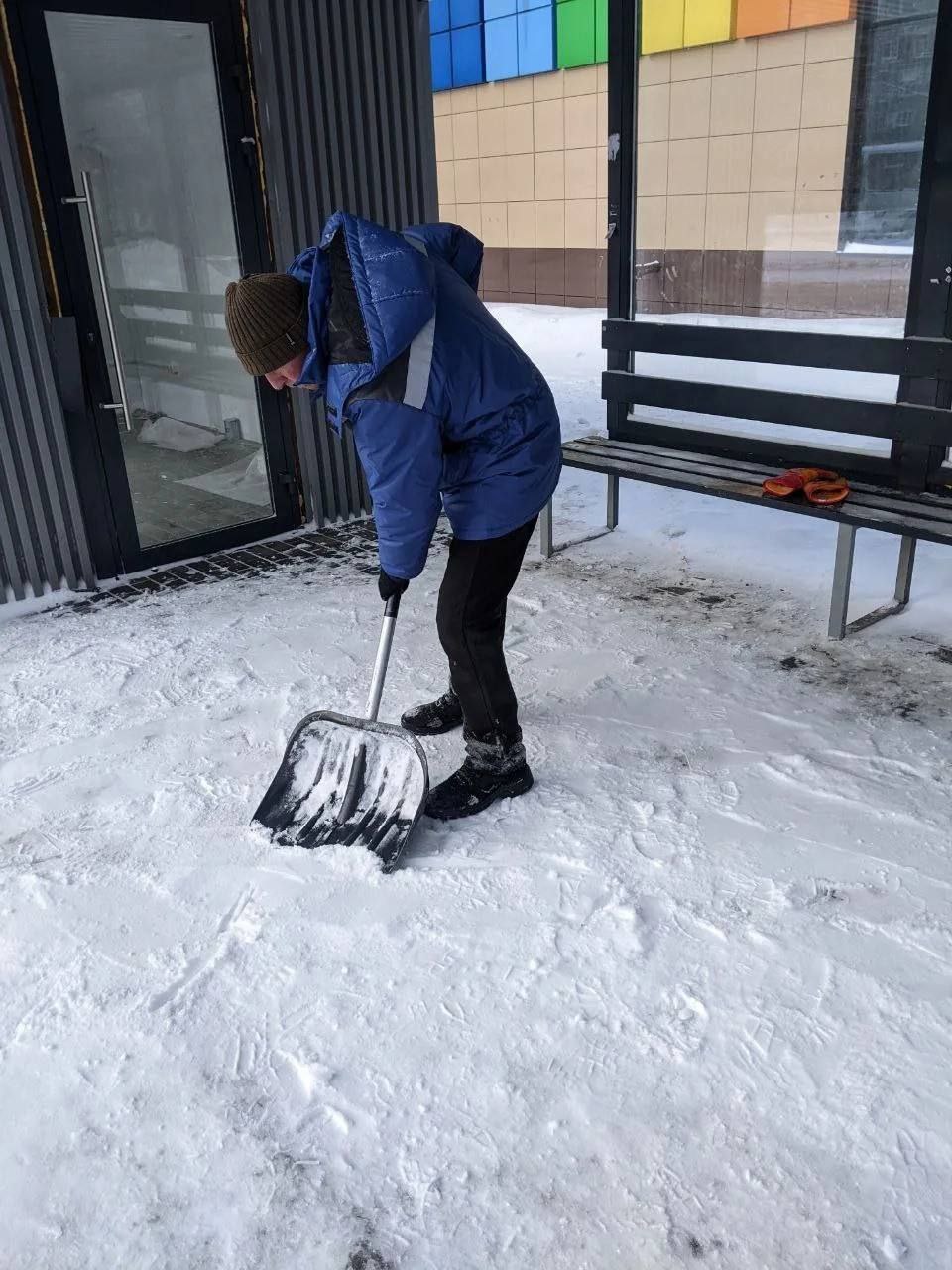 Сегодня с самого утра коллектив школы бокса приступил к уборке снега.