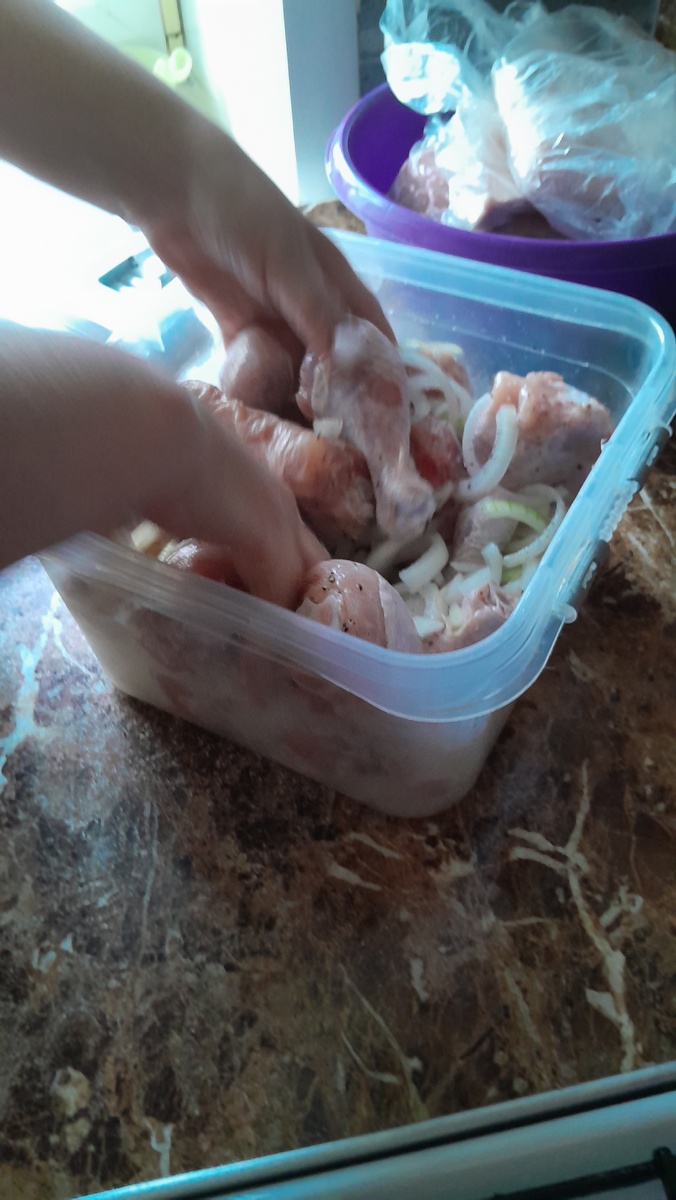 Подготовка ножек: Сделать надрезы на мясе у кости для лучшего промаринования. Залить маринадом, осторожно перемешать, чтобы каждая ножка была покрыта.