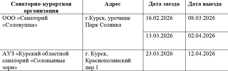 Имеются бесплатные путевки в санаторно-курортные организации Курской области.