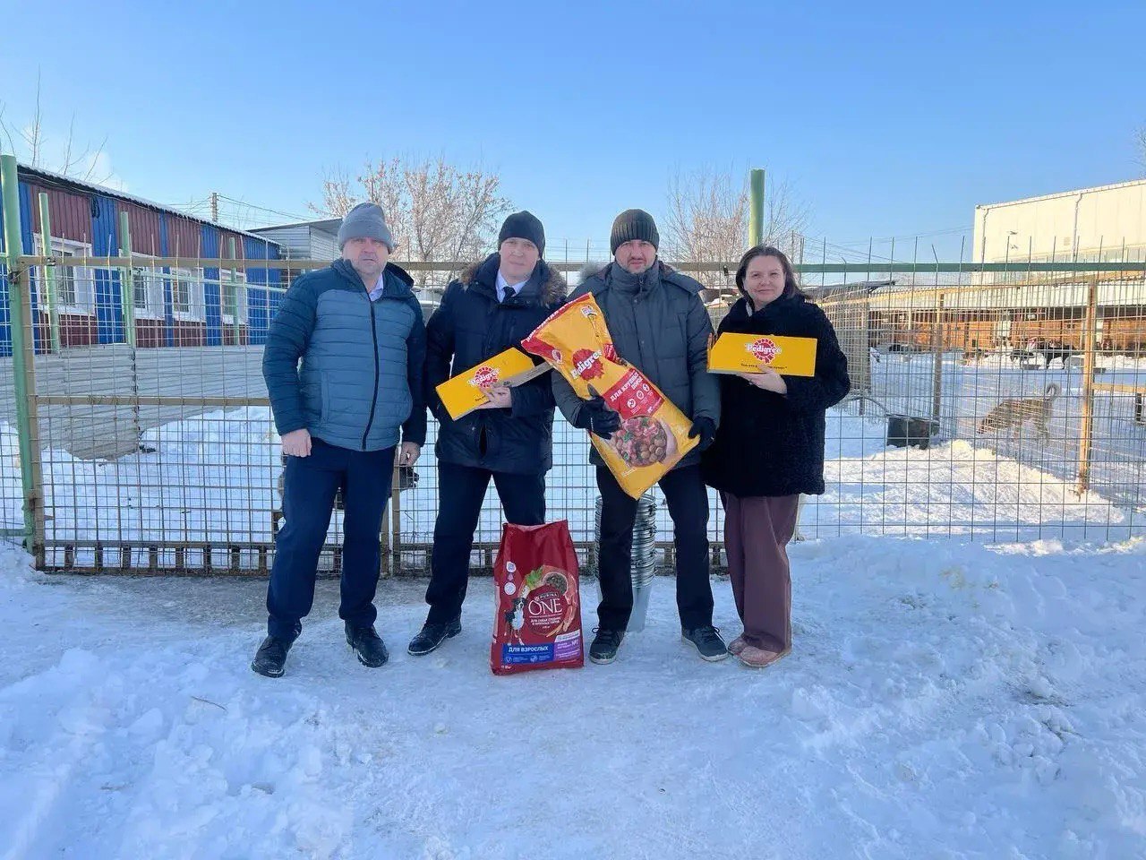 В ходе визита представители министерств познакомились с четвероногими обитателями приюта и передали значительный объём специализированного корма для собак.