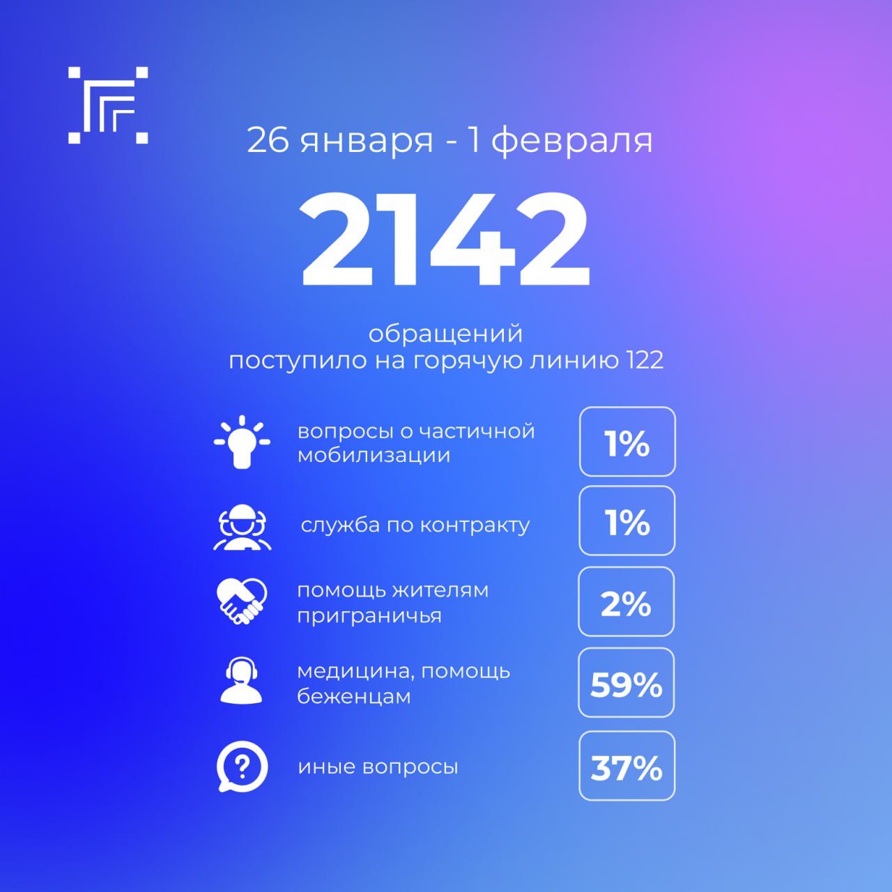Всего за прошедшую неделю на «горячую линию» 122 поступило 2142 обращения.