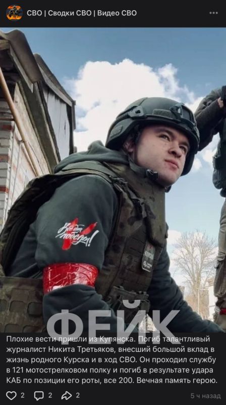 Враги распространяют фейки о гибели на фронте автора «Актуального Курска» Никиты Третьякова. В сети появились десятки лживых публикаций на эту тему.