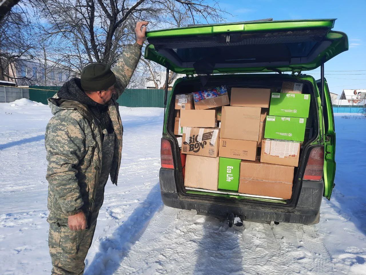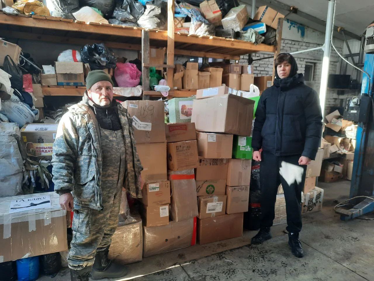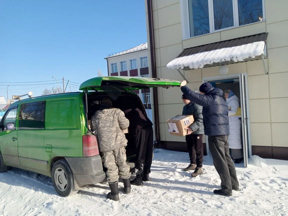 Представители школы встретились с руководителями волонтёрской группы "Своих не бросаем" — Михаилом Асмоловым и Анастасией Чаплыгиной. Передали собранную помощь.
