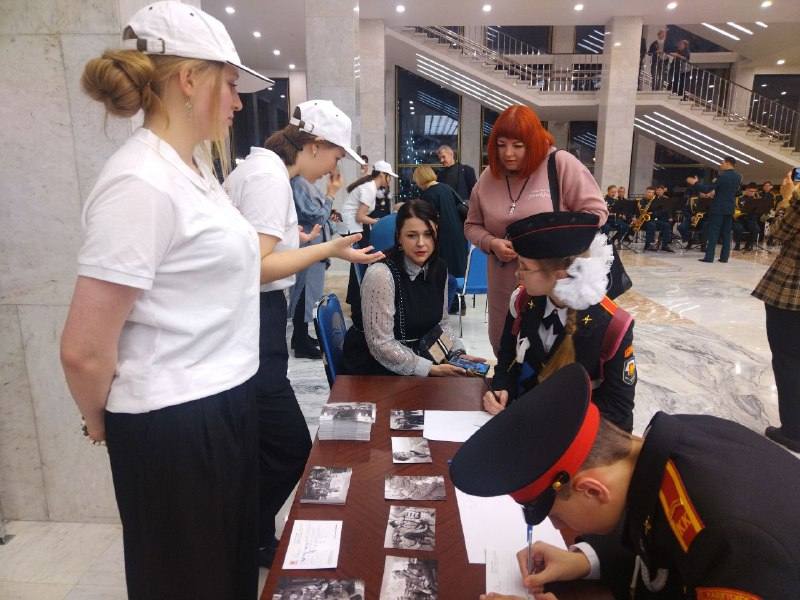 В холле гостей встречал оркестр, а также проходила добрая акция «Письмо солдату» — каждый мог написать тёплые слова поддержки защитникам.