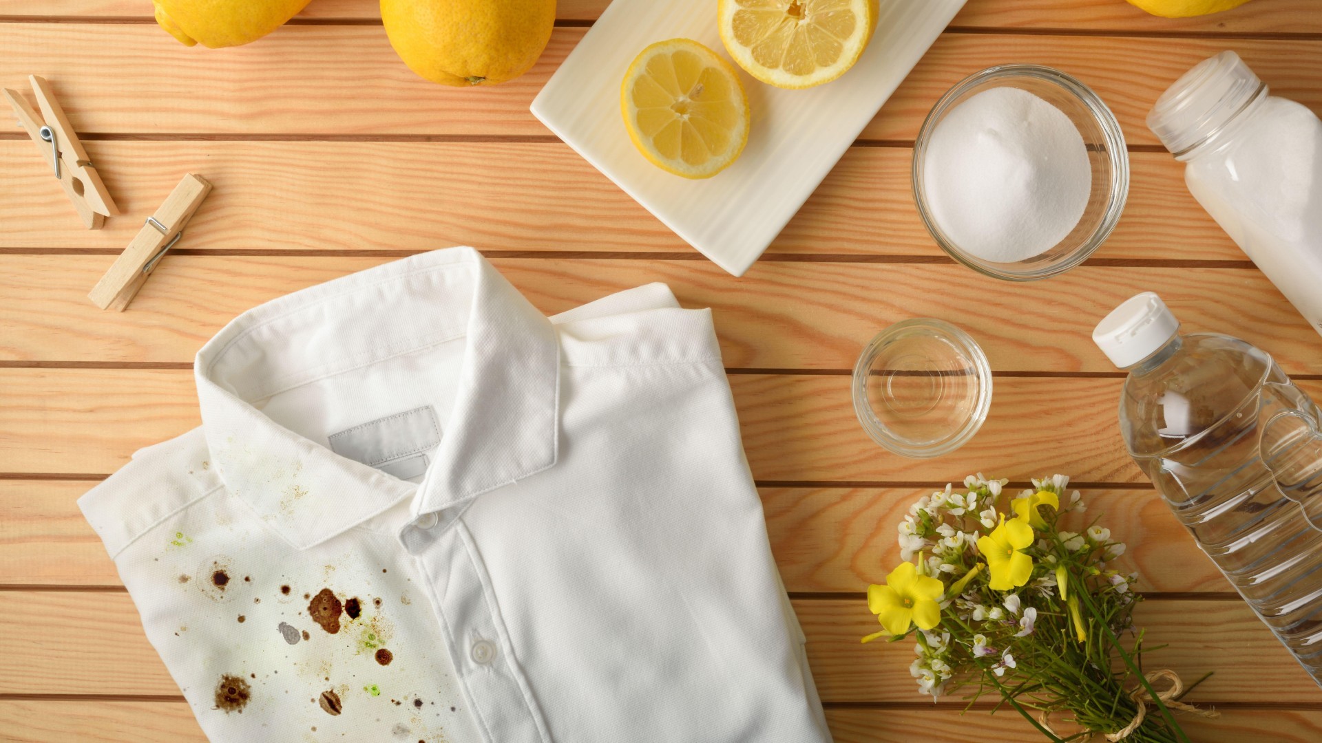 Избавиться от сложных пятен помогли апельсин (можно лимон), белый уксус и соль. Процесс выведения пятен оказался прост — сначала нужно протереть участок ткани долькой цитрусового с солью, а затем стереть тряпкой, смоченной в уксусе.