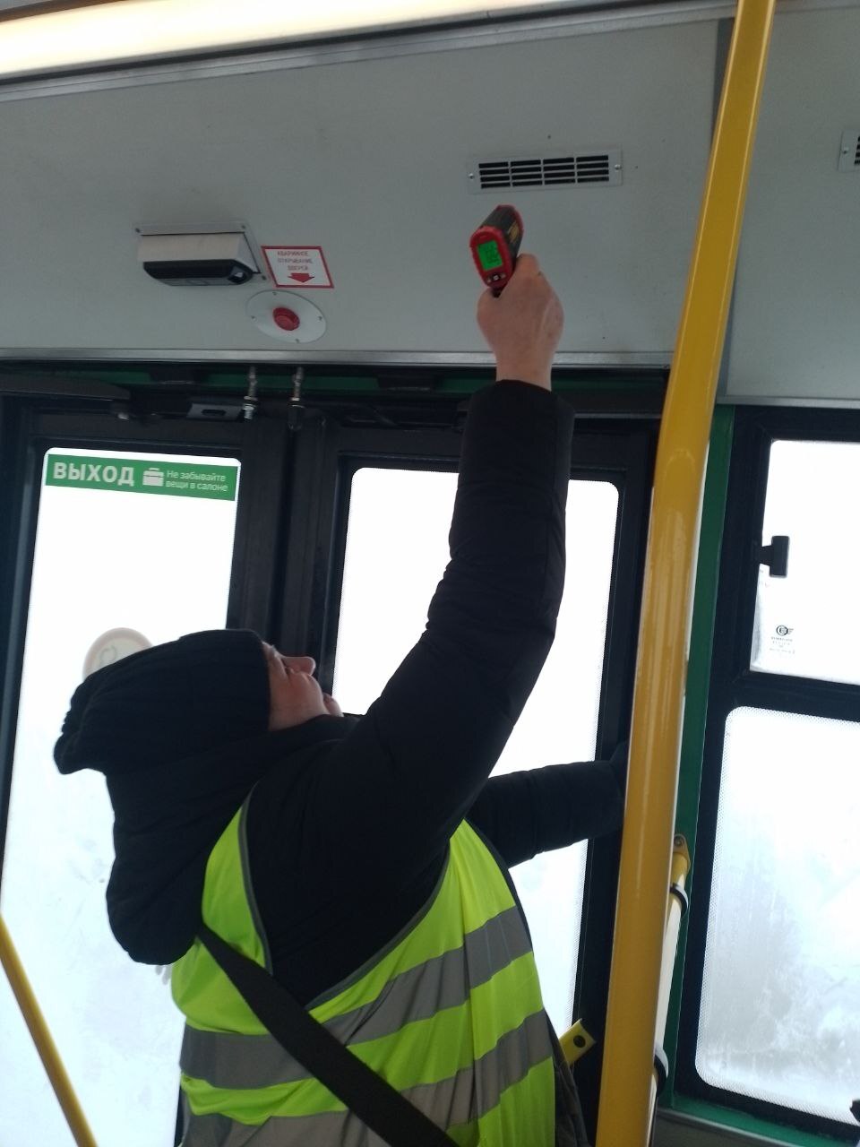 Контроль за работой перевозчиков усилен, сообщили в Центре транспортных услуг. С 1 по 5 февраля проверяющие с помощью пирометров выявили 79 случаев, когда температура в салоне была ниже нормы - в основном в автобусах большого и среднего класса.
