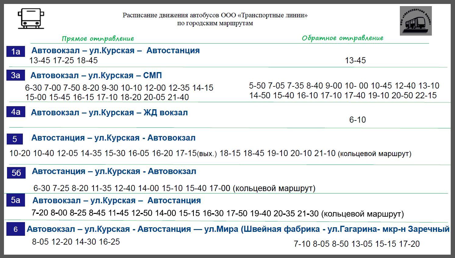 В расписание движения автобусов ООО «Транспортные линии» внесены изменения.