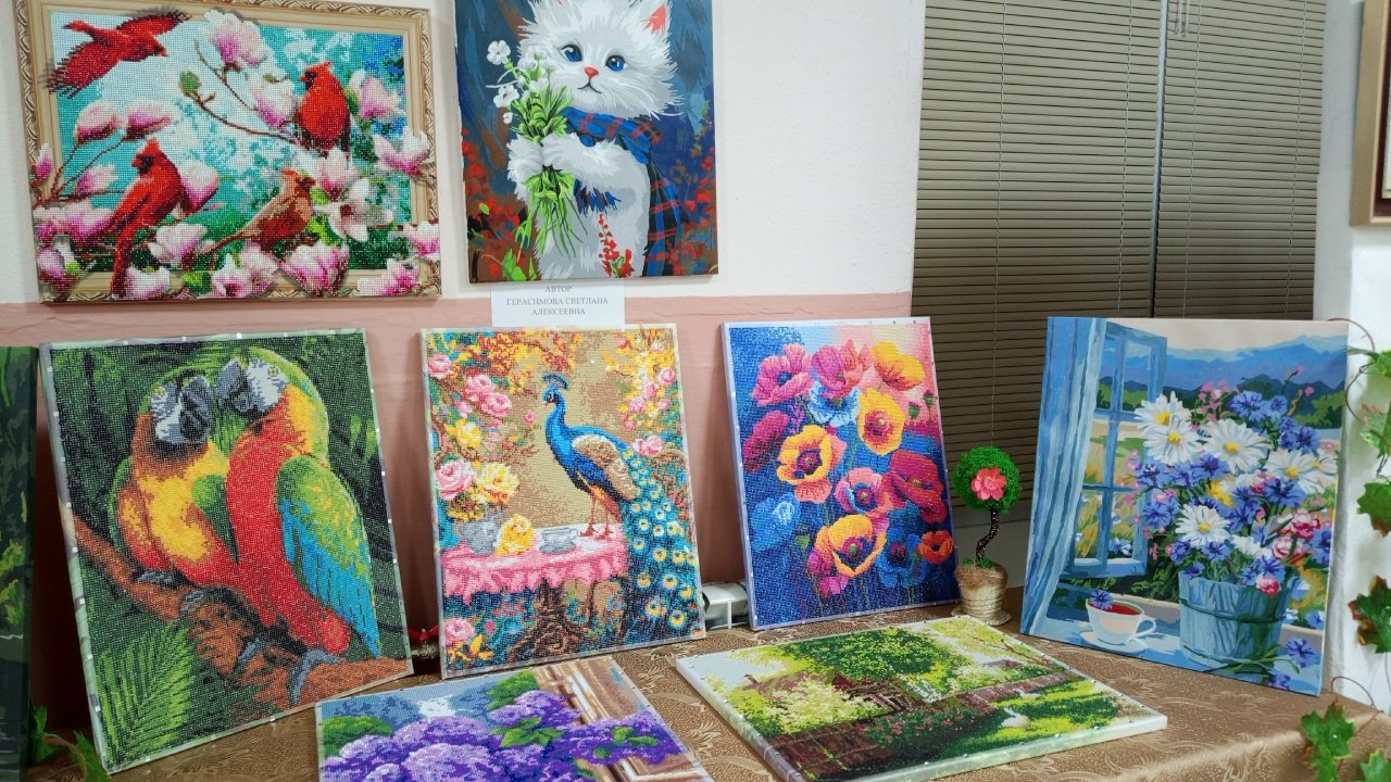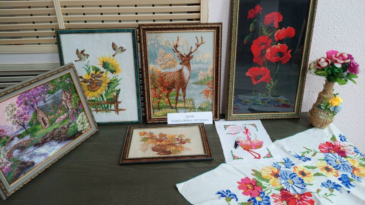 Вышивка крестом, бисером, гладью, картины по номерам, шкатулки, салфетки вязаные крючком, лоскутное одеяло - всё это представлено на выставке нашими талантливыми земляками.