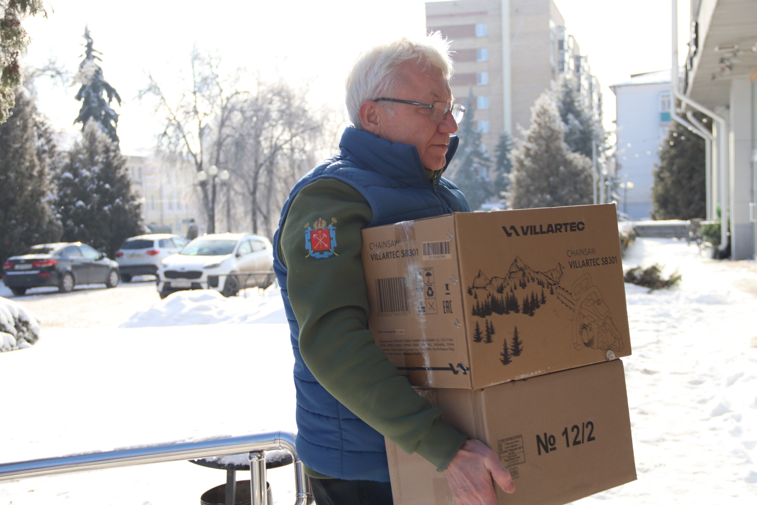 Во время передачи партийцы не прекращали выдавать продуктовые наборы для переселенцев из приграничных районов. Руководитель Курского регионального исполкома партии Сергей Муравьёв провёл для гостей небольшую экскурсию по штабу.