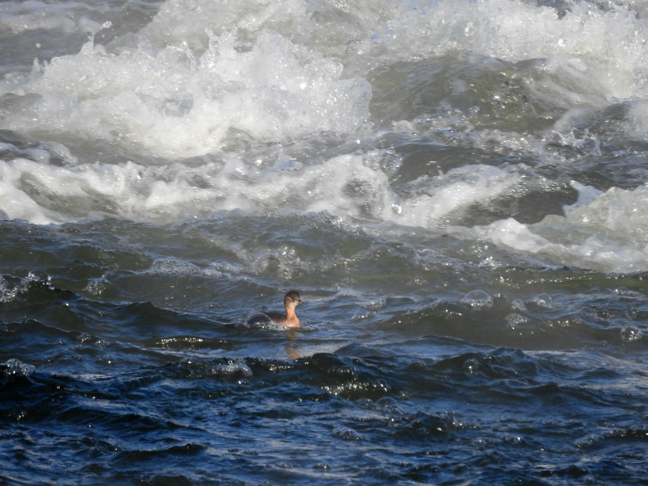 - Малая поганка - самая мелкая из наших водоплавающих, размером с небольшого голубя - отчаянно ныряет за добычей среди рева волн, превосходящих ее в разы по размеру, - рассказали в группе «Птицы города Курска».