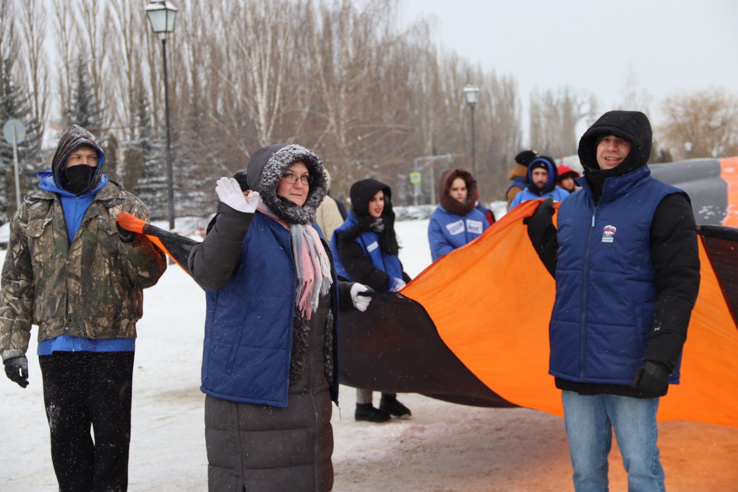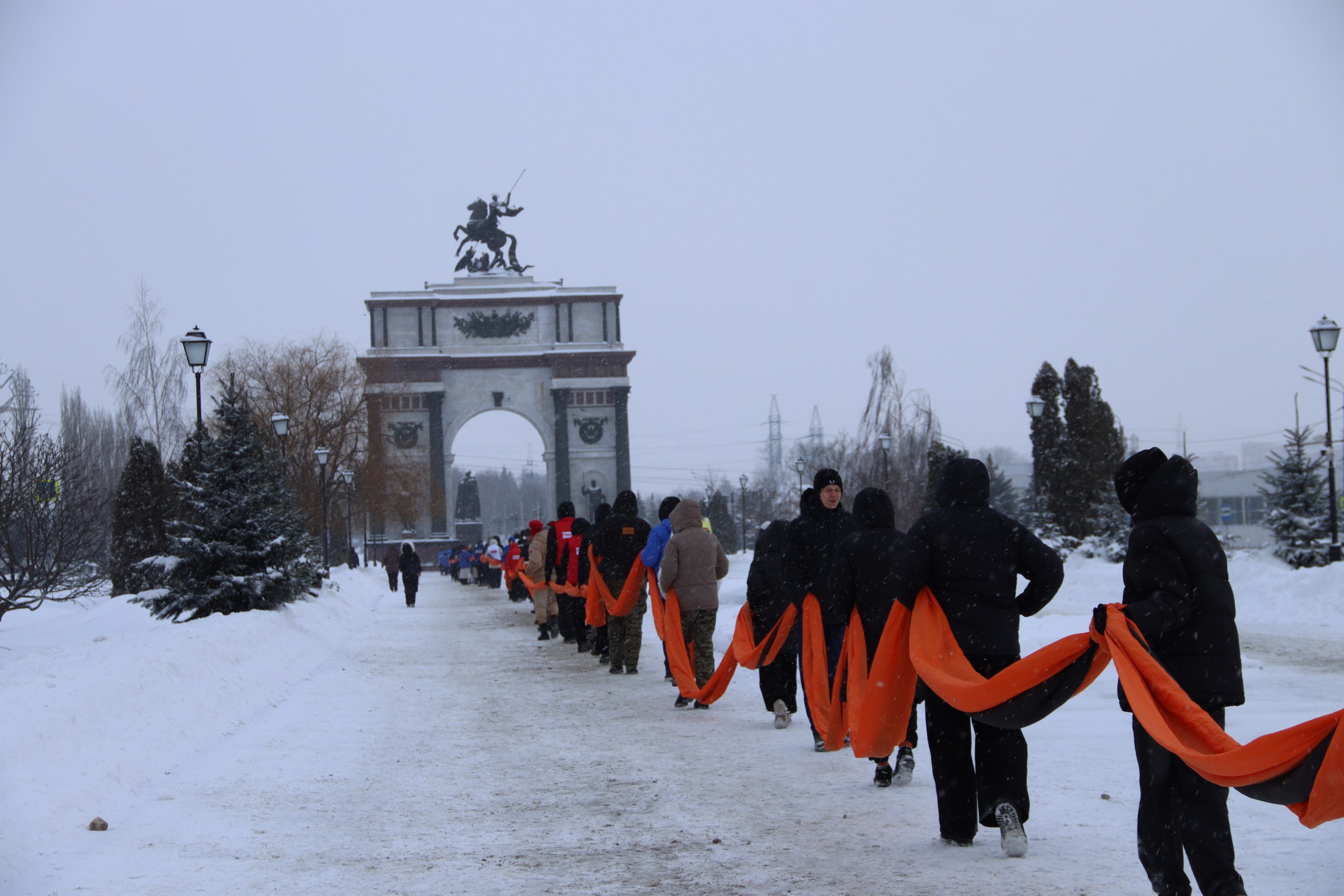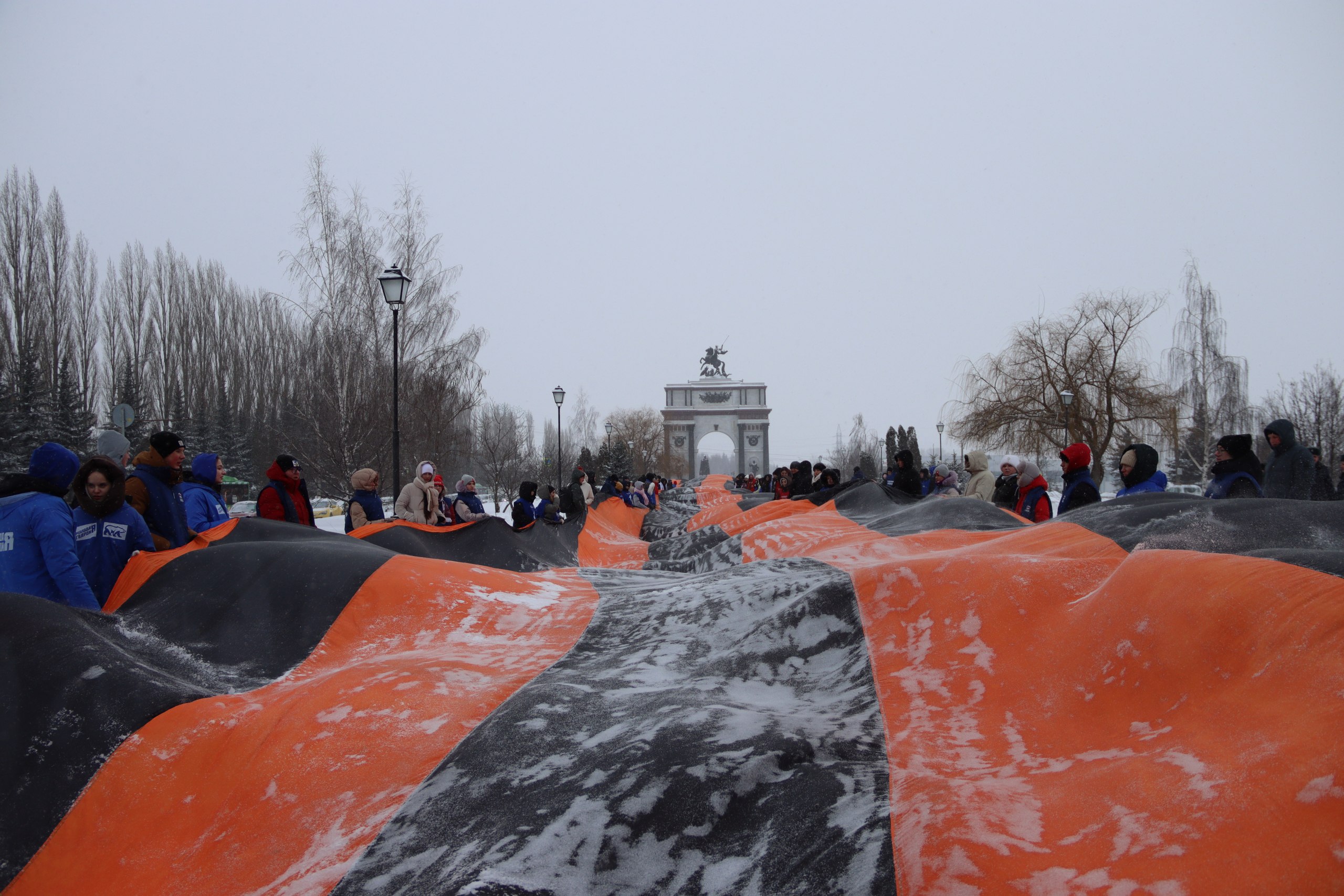 Полотнище протянулось от Триумфальной арки до мемориального огня. Акция прошла при поддержке партии Единая Россия в рамках проекта «Историческая память». В ней участвовало около сотни человек.