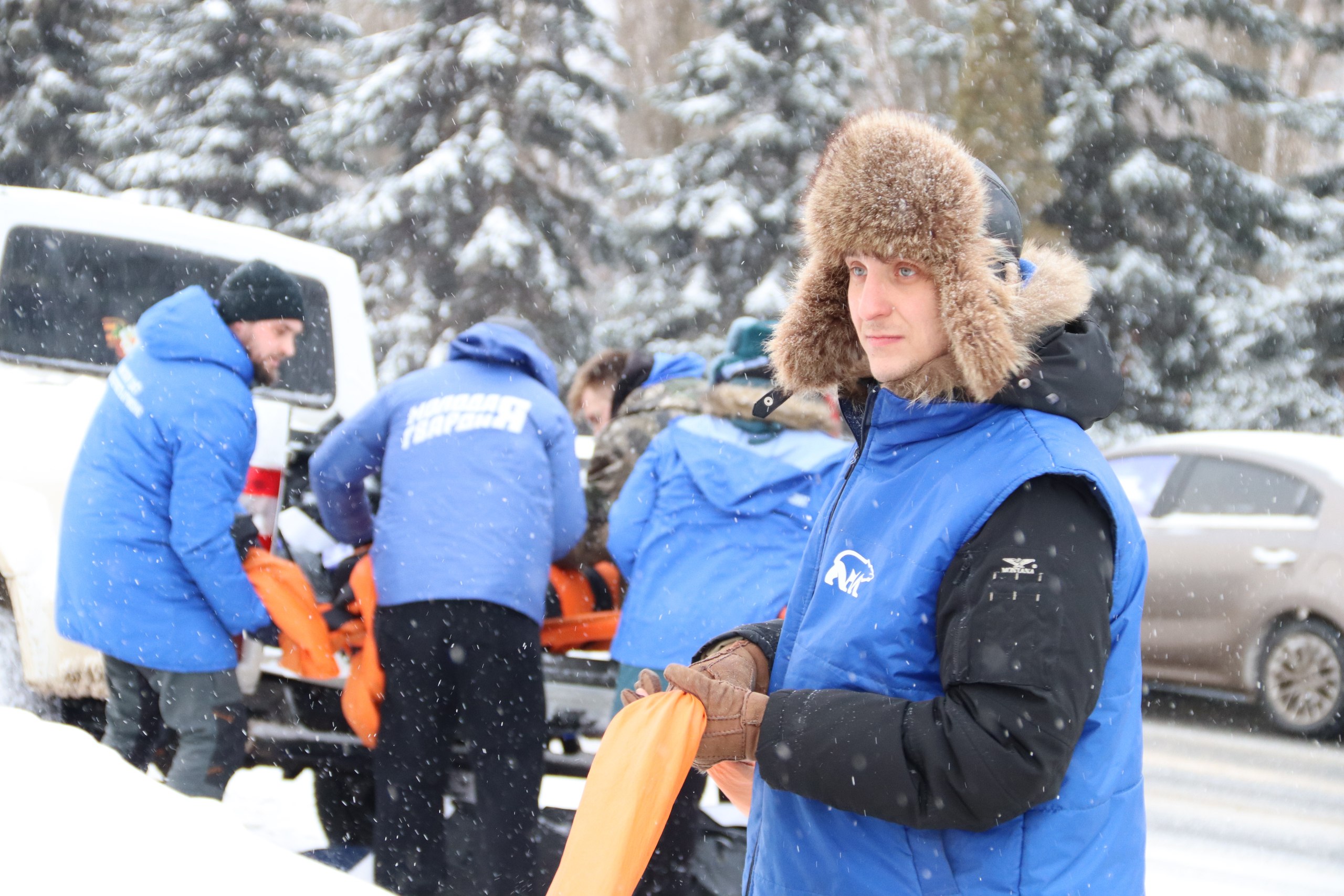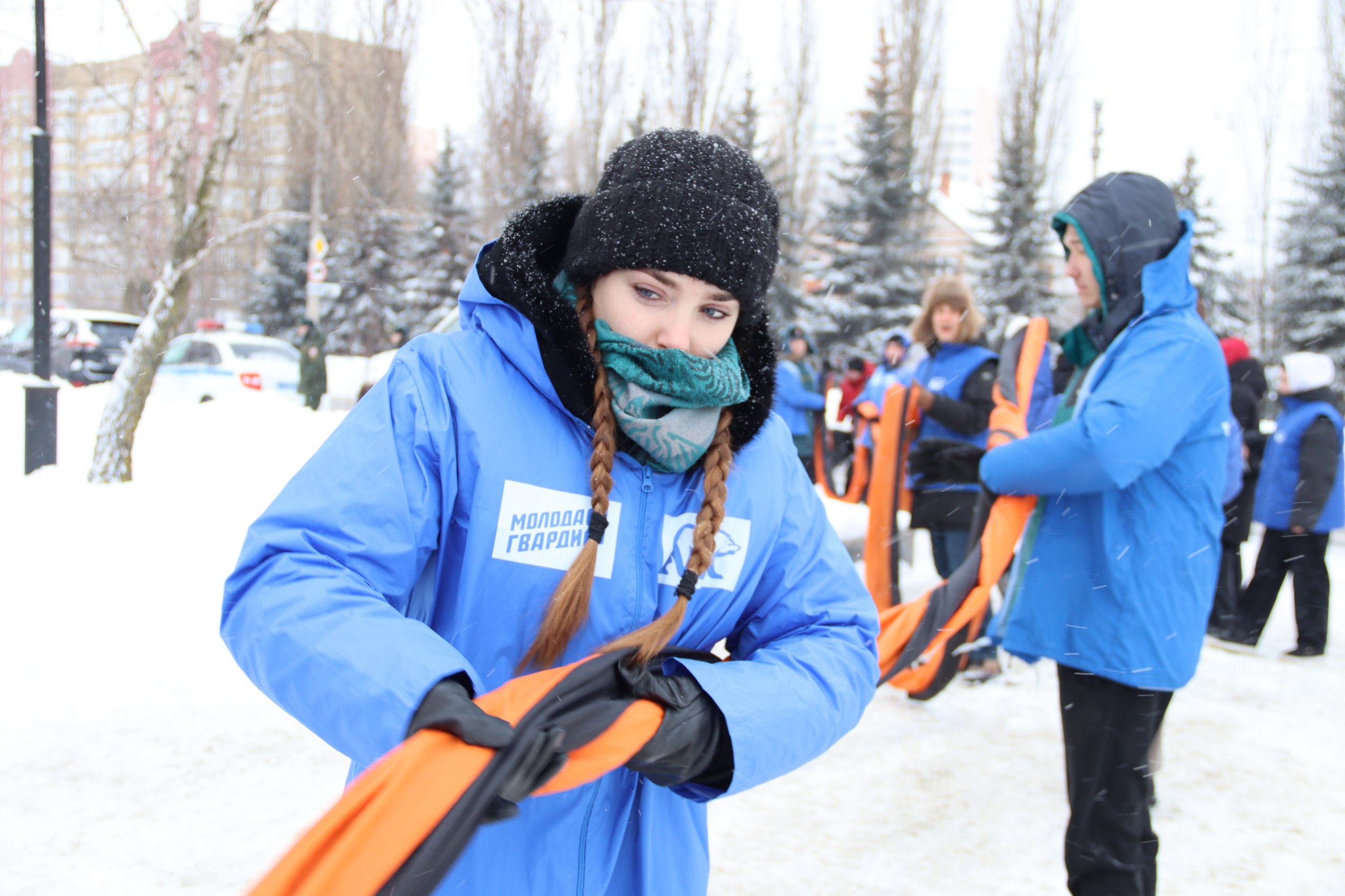 Сегодня в Курске на проспекте Победы единороссы, молодогвардейцы, активисты «Волонтёрской роты Боевого Братства» и общественных организаций региона развернули георгиевскую ленту в честь 83-й годовщины освобождения города от немецких оккупантов.