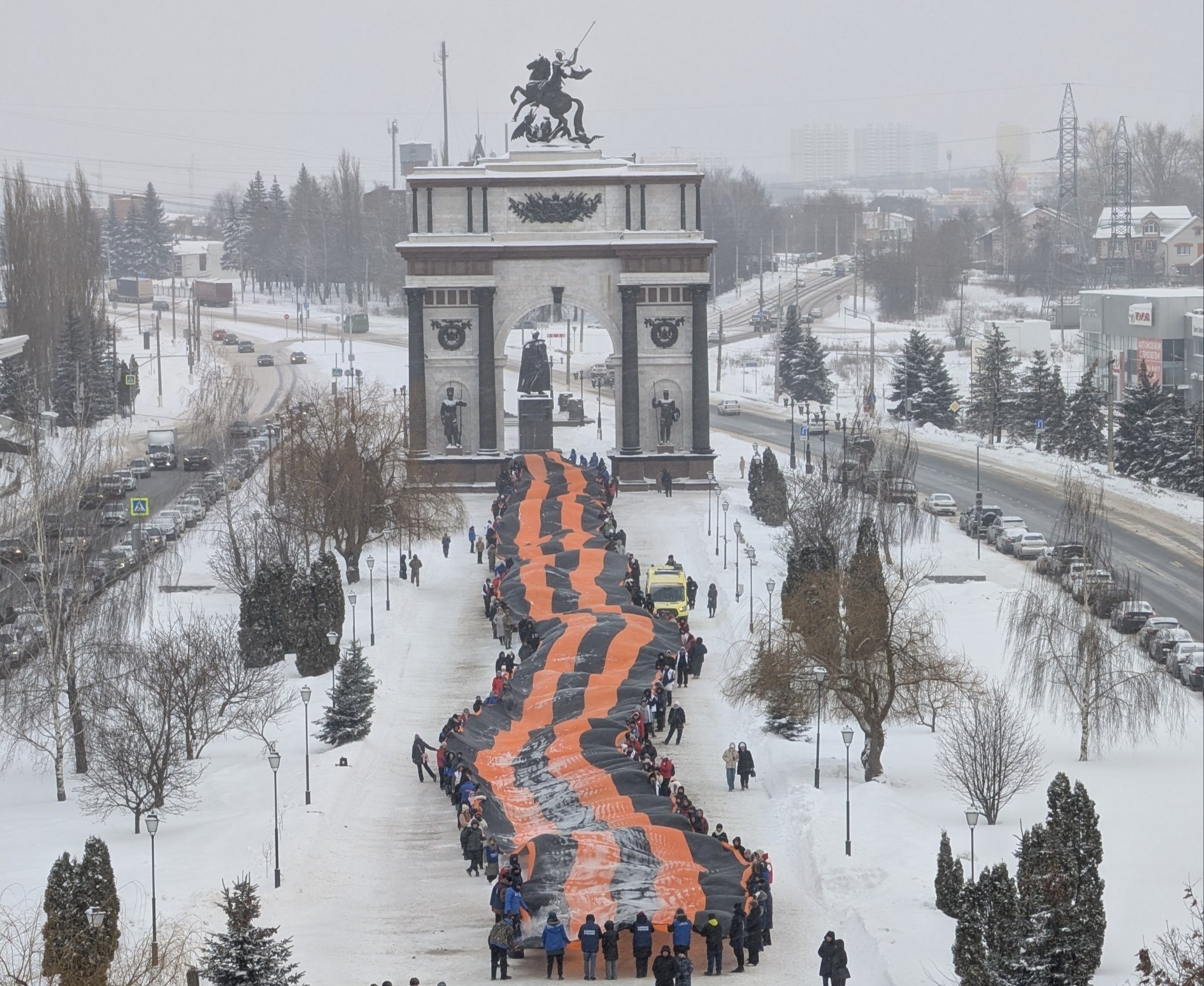 На проспекте Победы развернули 150-метровую георгиевскую ленту