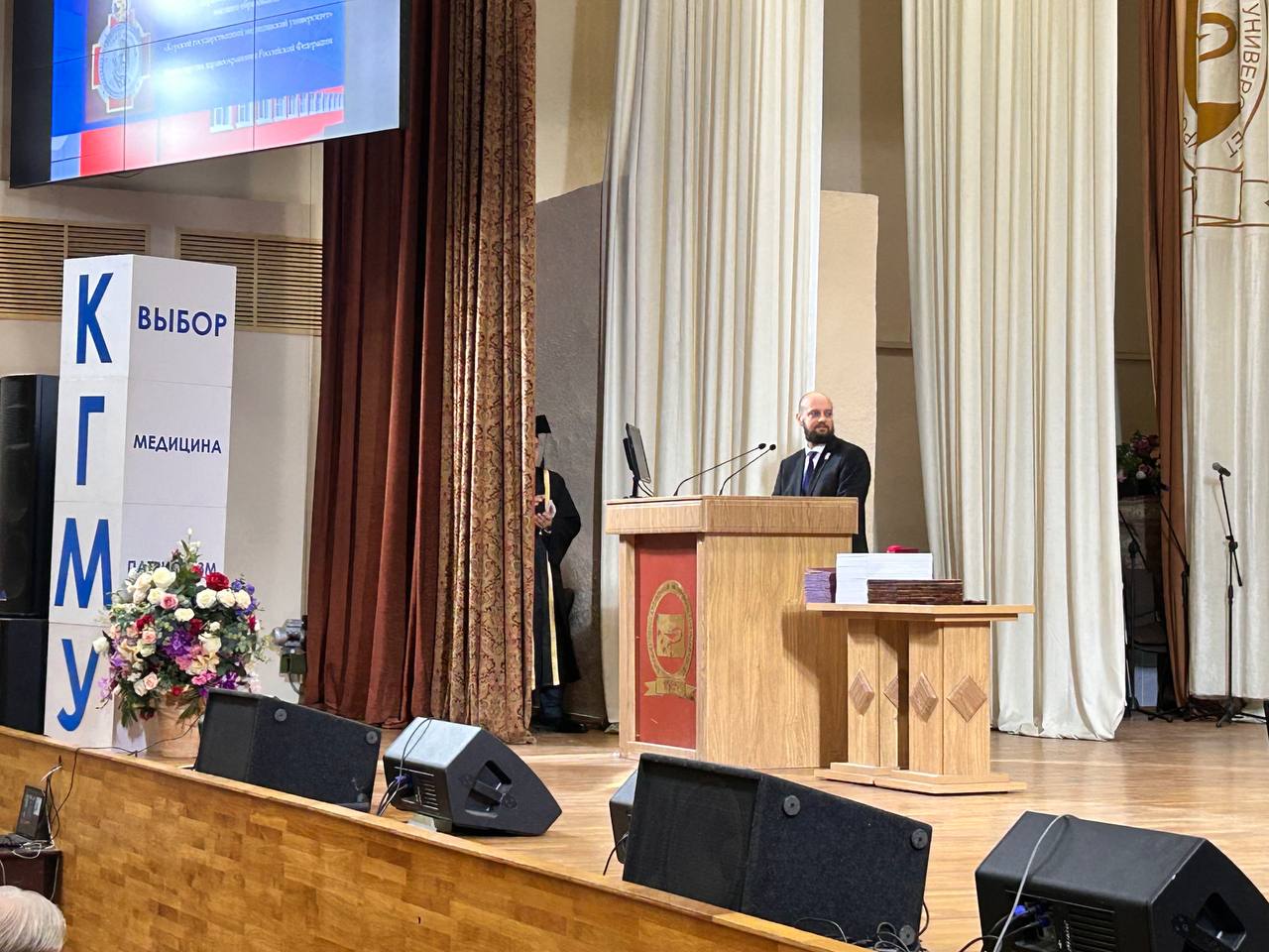 — Поздравляю студентов, выпускников и преподавателей КГМУ с днём рождения учебного заведения. В вузе готовят будущих профессионалов, выполняя задачи мирового масштаба — сохранение здоровья наших граждан и спасение жизней, — сказал Александр Чепик.