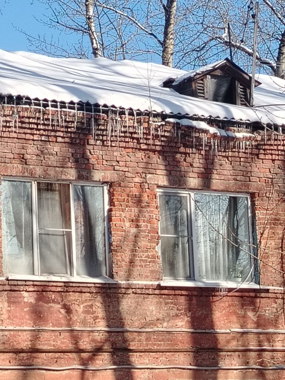 «Кладка кирпича очень сильно сдвинулась под крышей и нависла на честном слове над окном жилой комнаты. Вот-вот это все полетит по подоконникам и в окна. Трещины по дому, даже визуально видно, что расширились после взрыва во дворе. В подъезде вывалилась часть кирпича из стены. Дом аварийный с угрозой обрушения несущих конструкций. Любое движение кирпичей может спровоцировать обрушение частей дома на головы людей», - рассказывает собственница комнаты Анна.