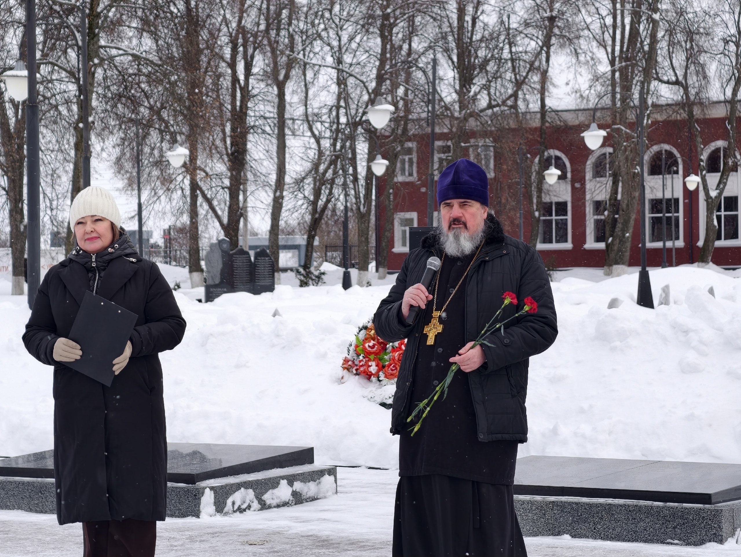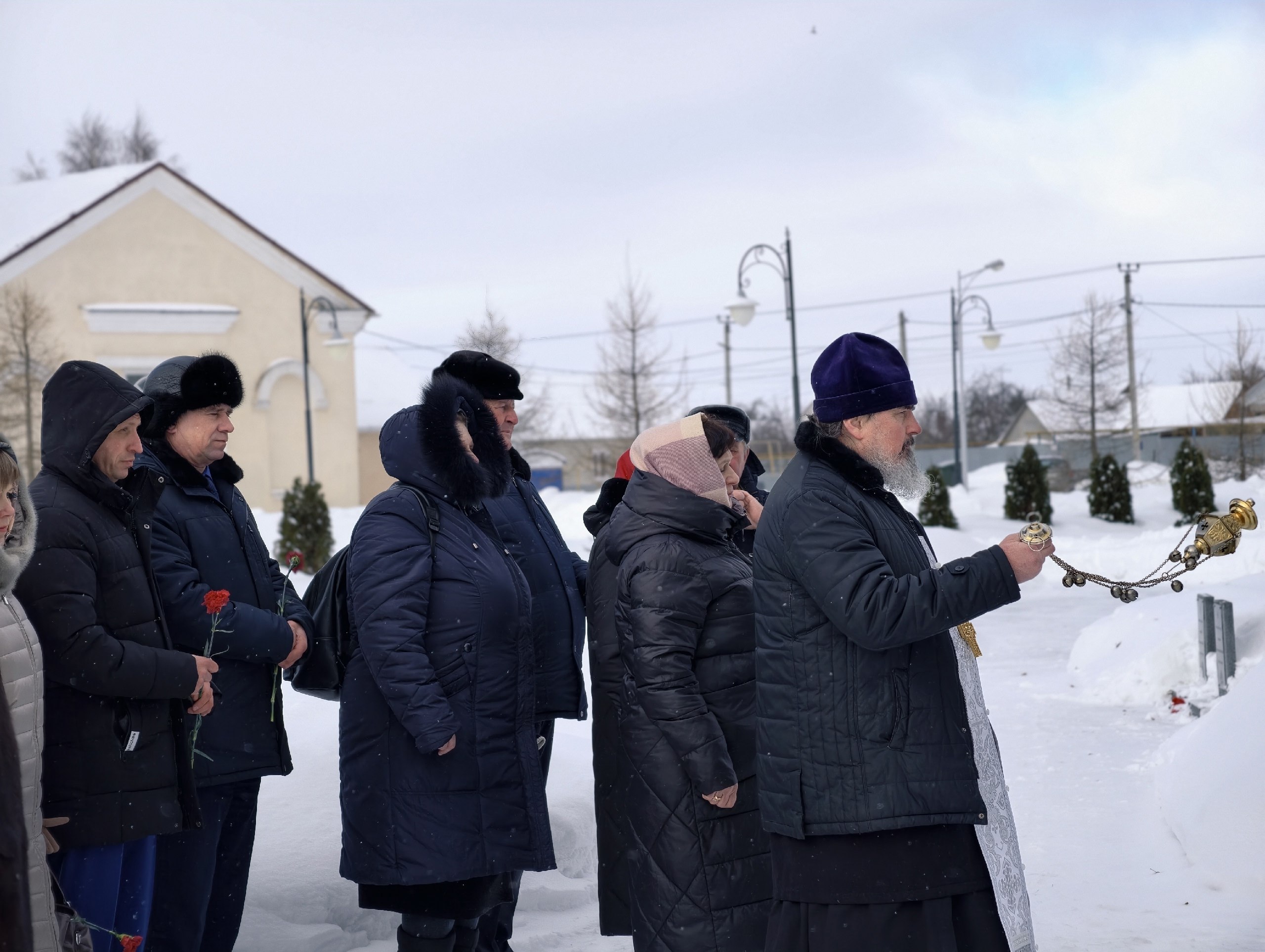 У часовни, посвящённой памяти погибших в годы войны, отец Владимир совершил литию.
