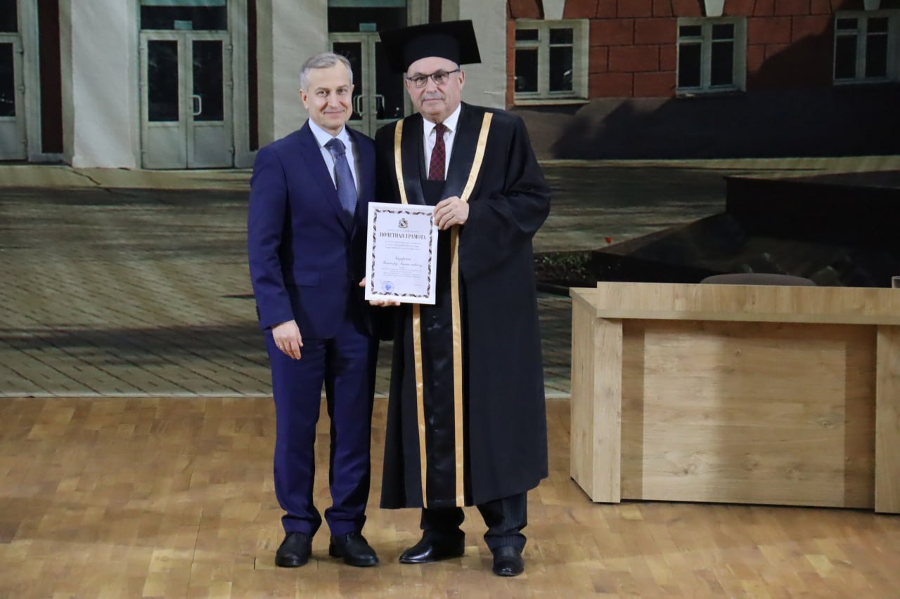 В Курском государственном медицинском университете состоялось расширенное заседание ученого совета, посвященное 91-летию вуза. В нем принял участие и.о. губернатора Курской области Александр Чепик. По поручению губернатора Александра Хинштейна он вручил награды отличившимся сотрудникам университета.