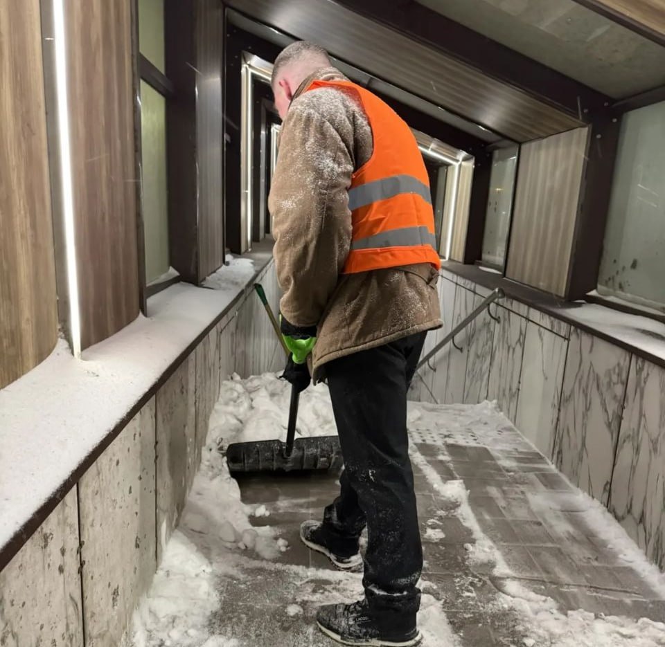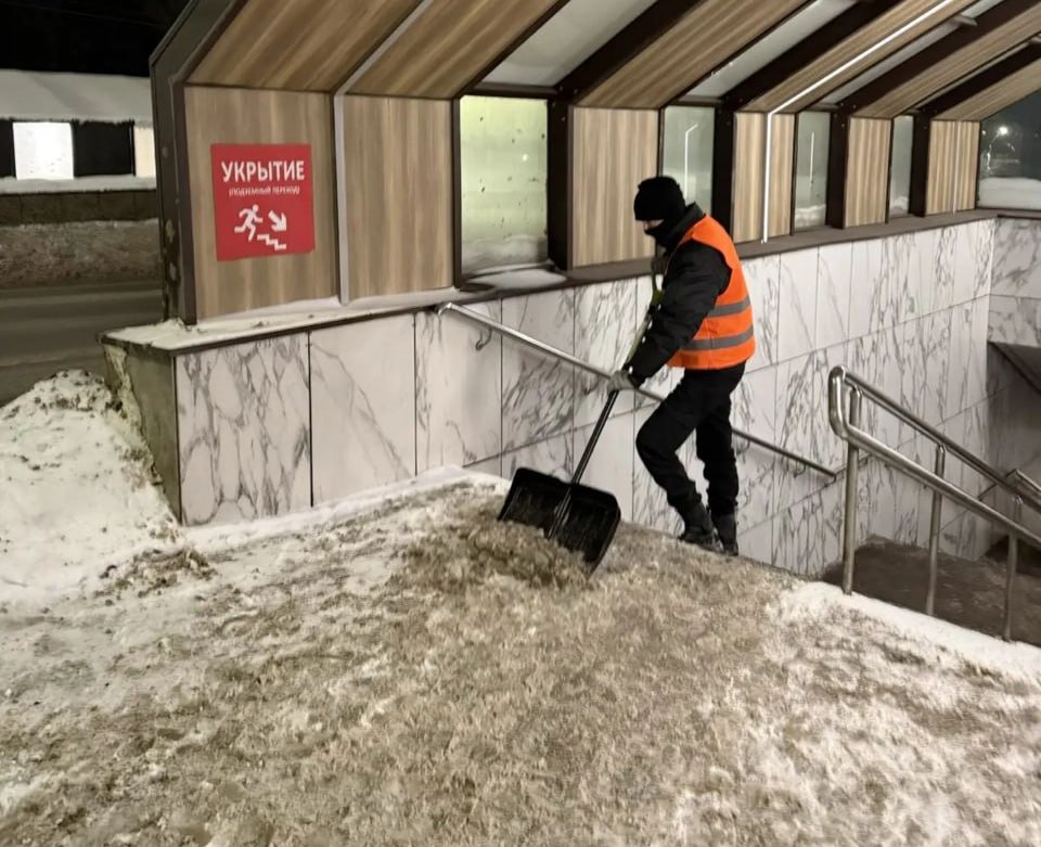 Специалисты очищают их от снега и наледи. Особое внимание уделяется ступенькам, чтобы люди могли передвигаться с комфортом. Кроме того, рабочие убирают там мусор.