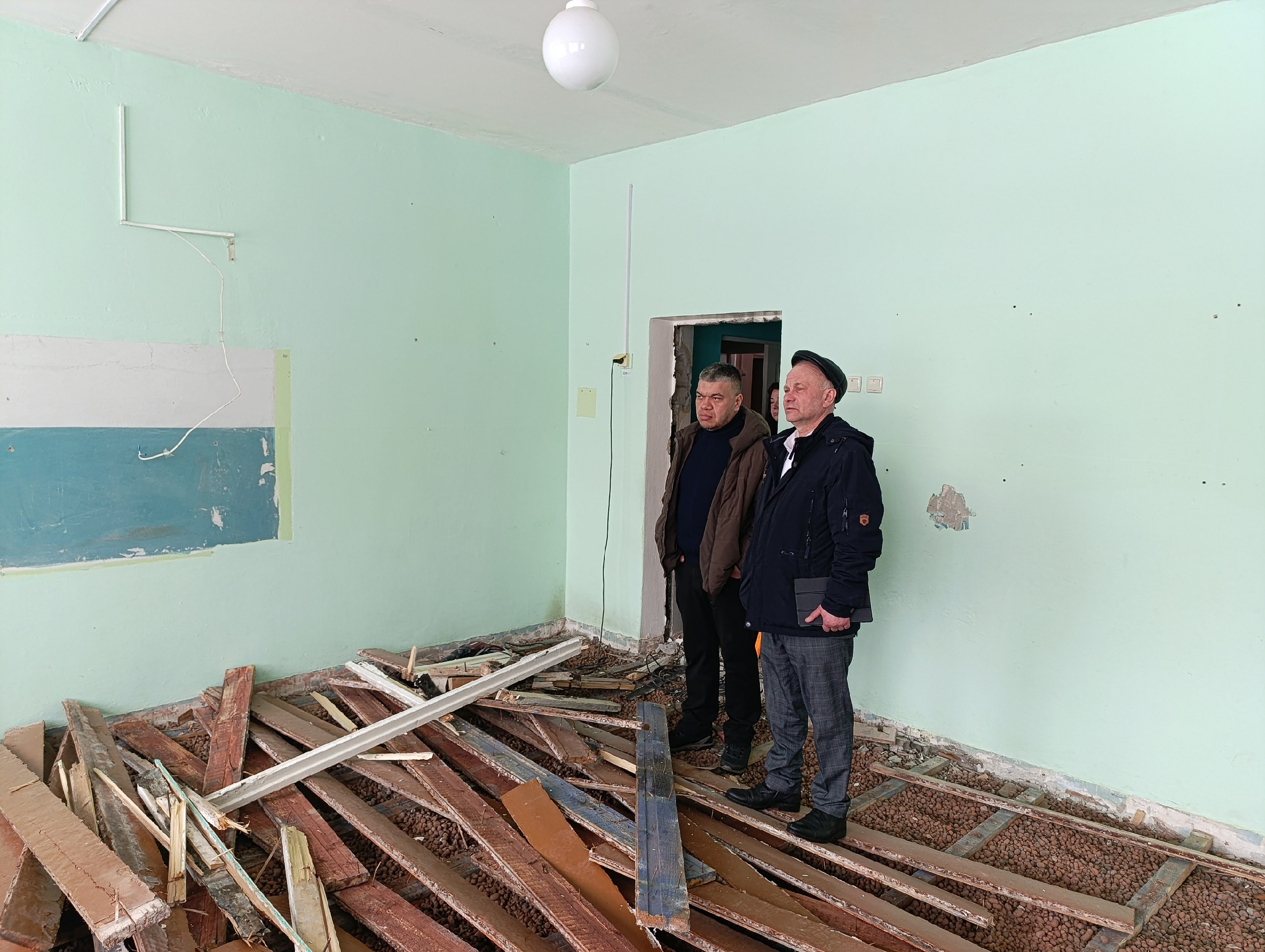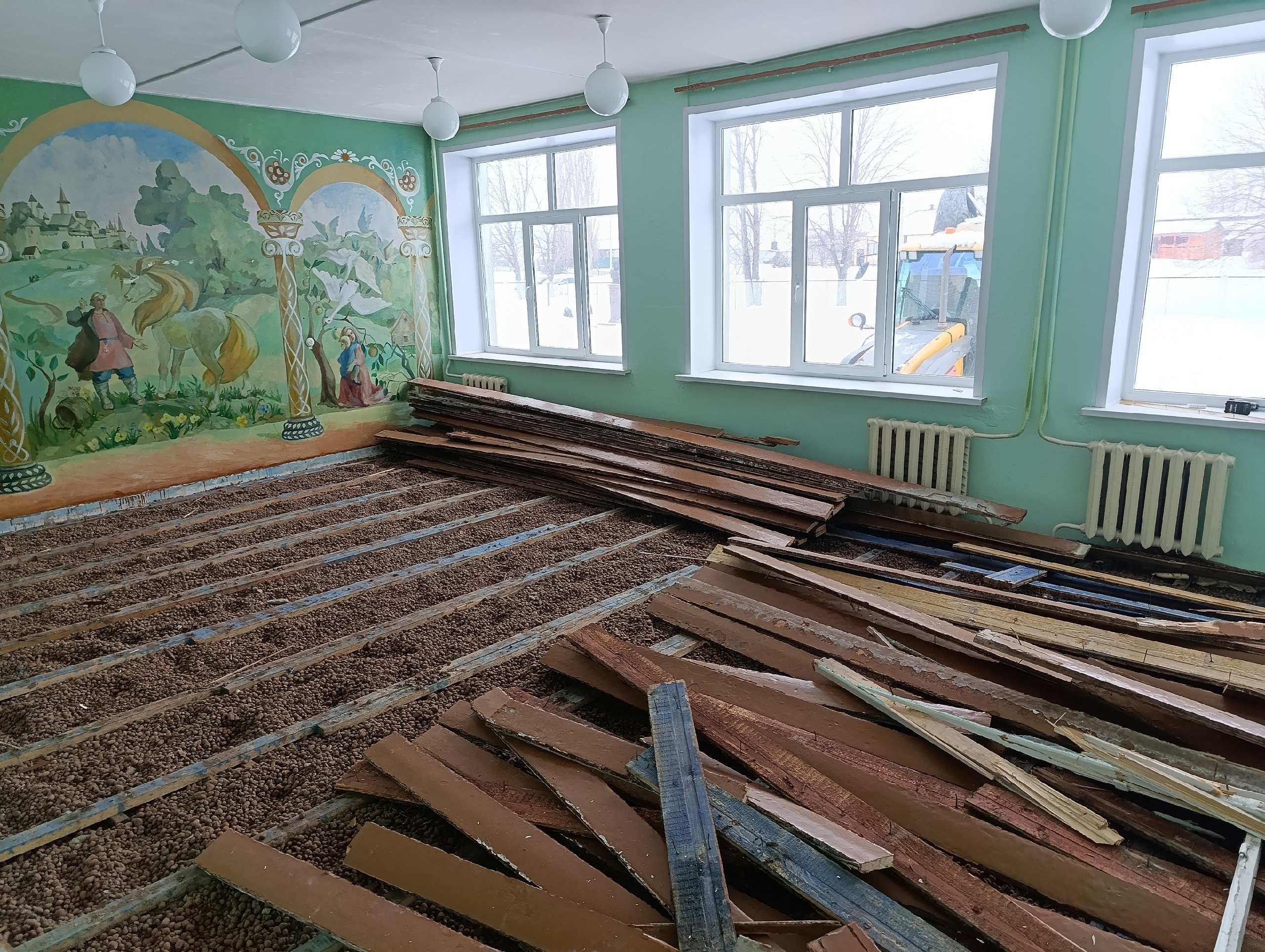 На текущий момент на объекте ведутся работы по демонтажу старых полов. Параллельно осуществляется завоз строительных материалов, необходимых для последующих этапов ремонта.