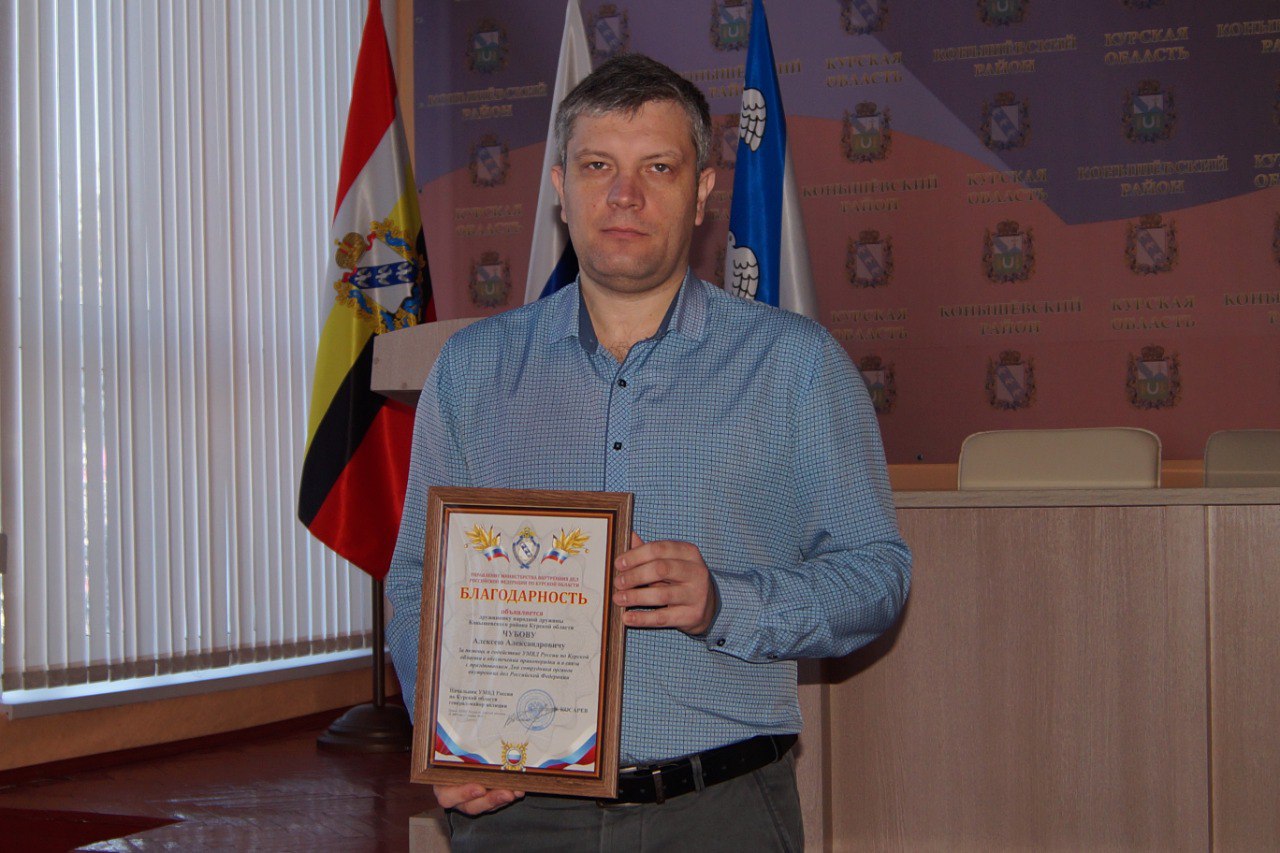 Завершилось заседание приятным моментом. Благодарностью управления Министерства внутренних дел Российской Федерации по Курской области награжден дружинник народной дружины Конышевского района Алексей Чубов, за помощь и содействие УМВД России по Курской области в обеспечении правопорядка, а также в связи с празднованием Дня сотрудника органов внутренних дел Российской Федерации.
