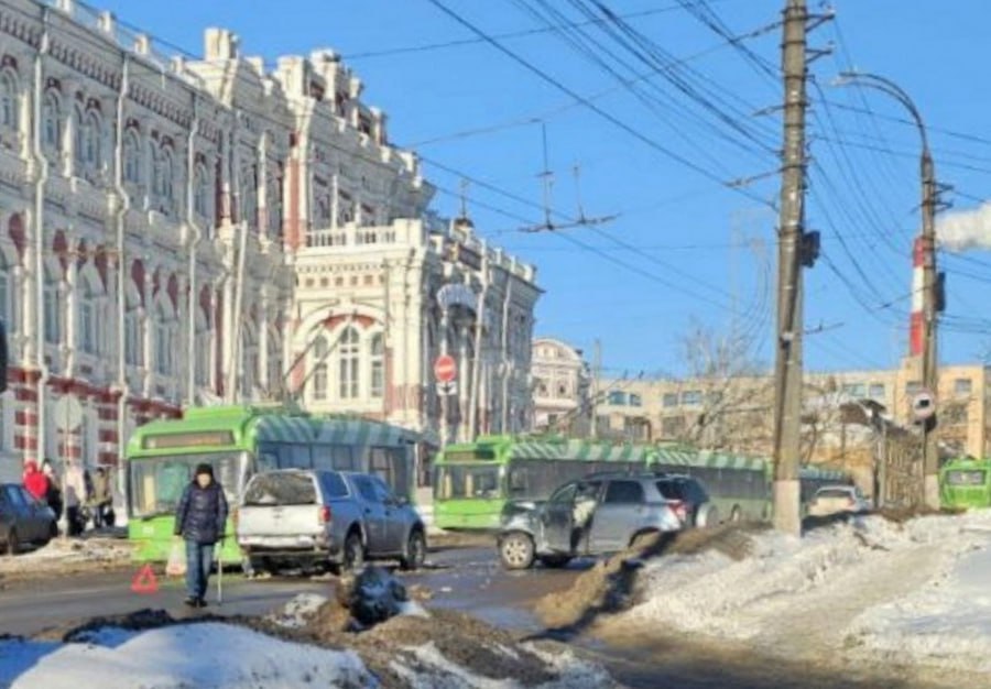 Из-за массовой аварии с троллейбусом на улице Сонина центр Курска встал в плотной пробке.