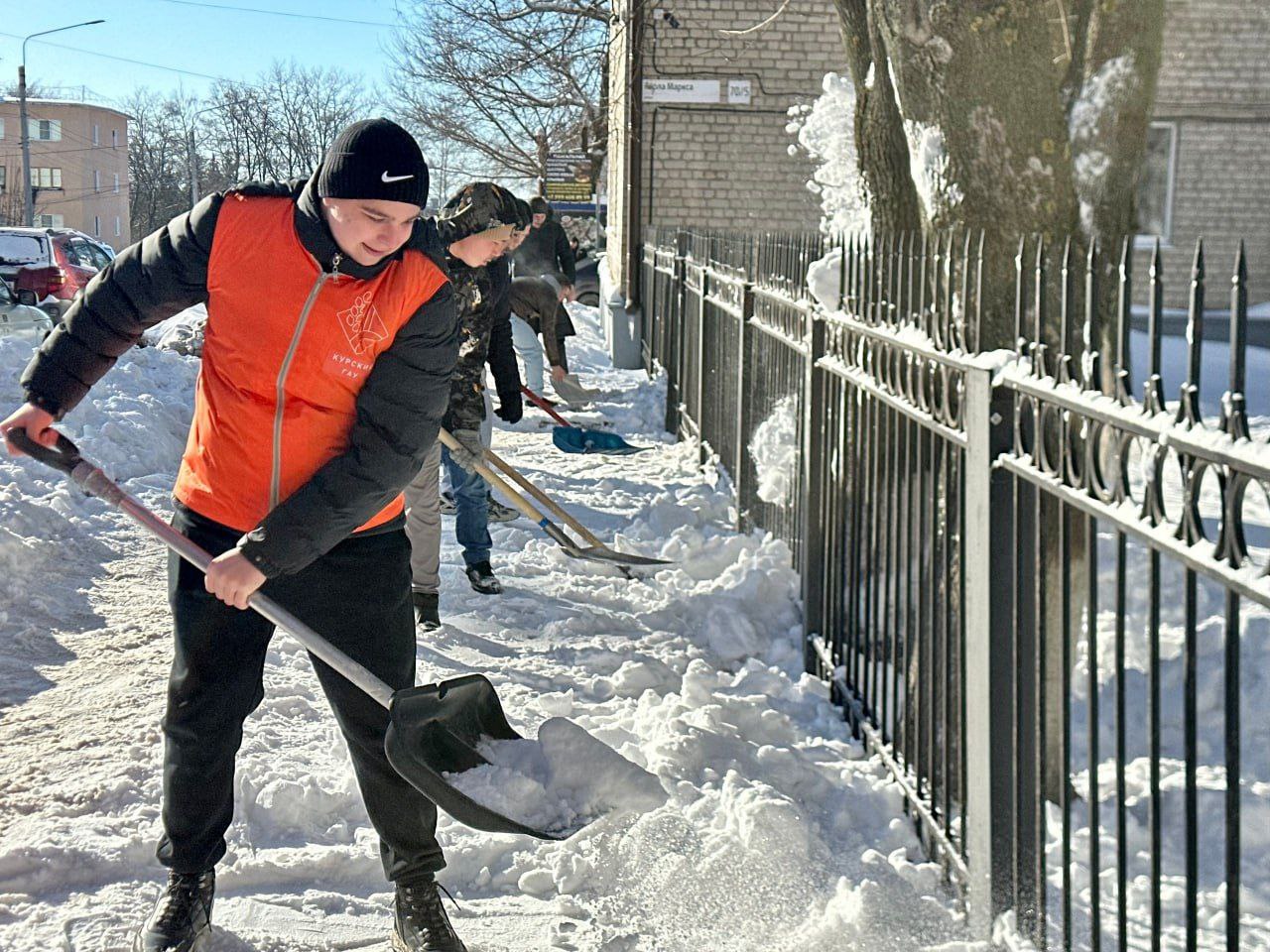Студенты Курского ГАУ также помогают расчищать город от снега