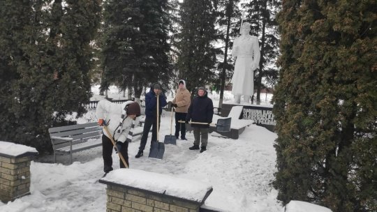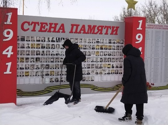 Так, ребята расчистили от снега Братскую могилу, Курган Славы, Стену памяти и Памятный знак труженикам тыла.