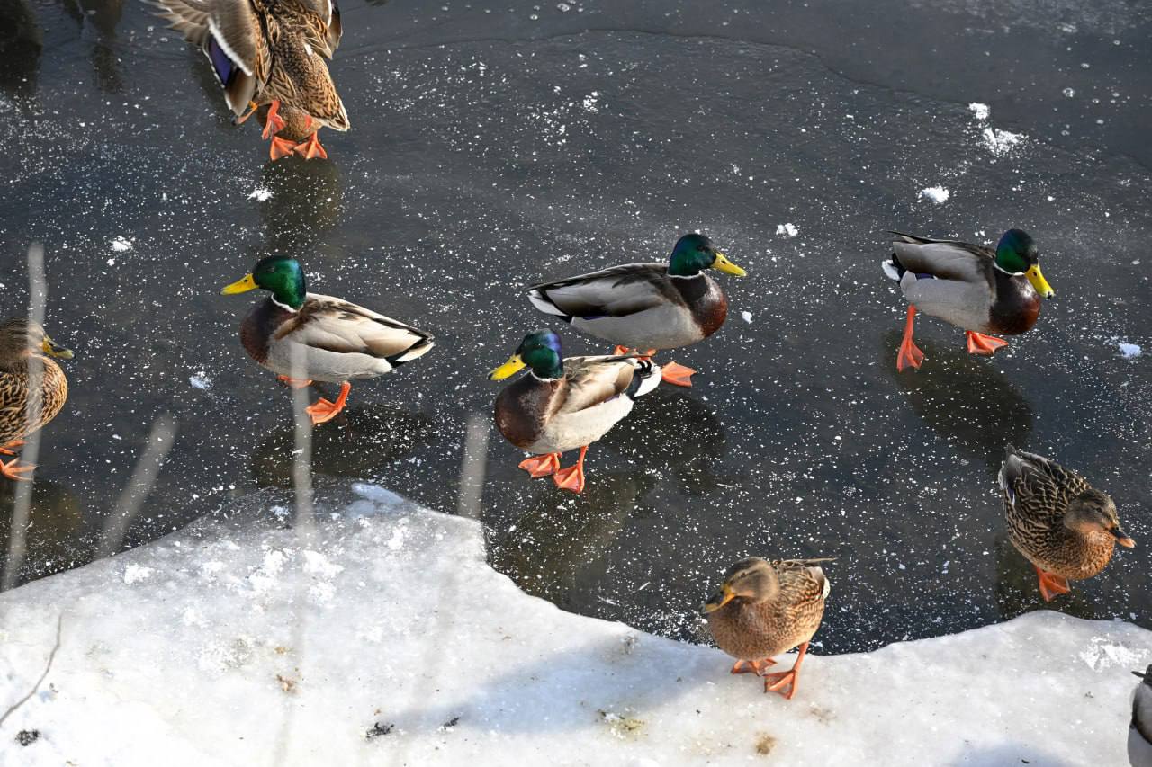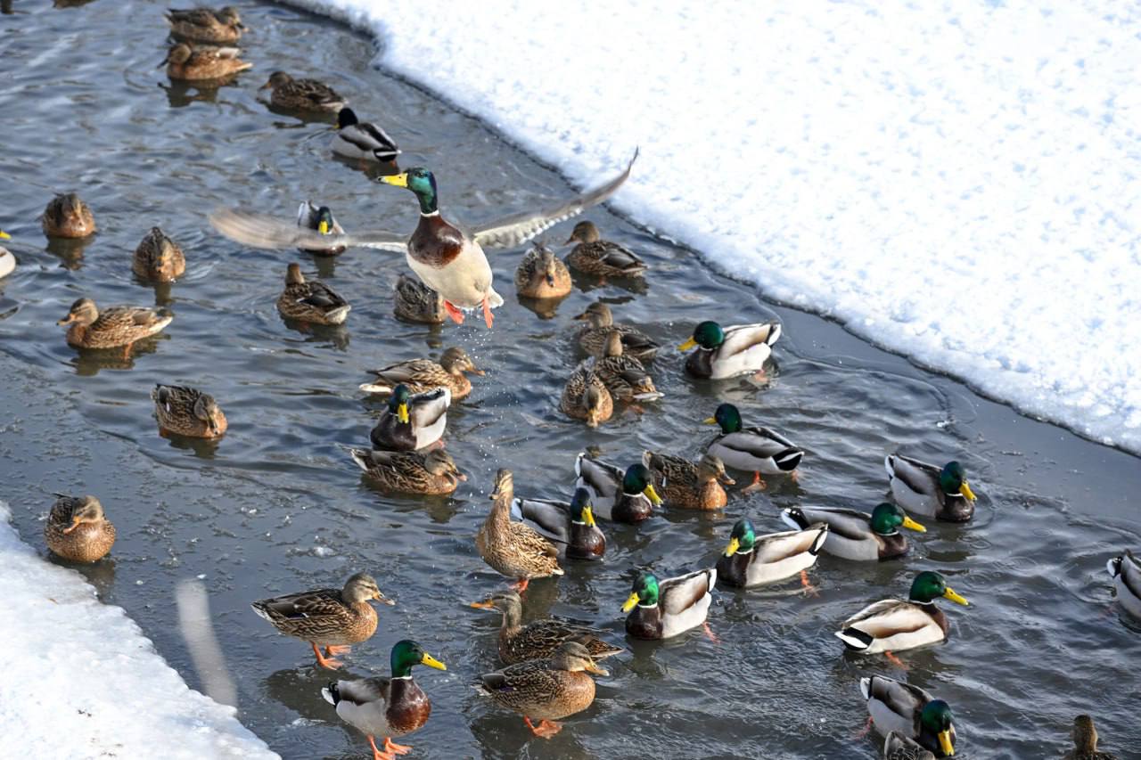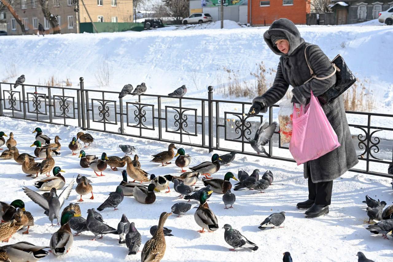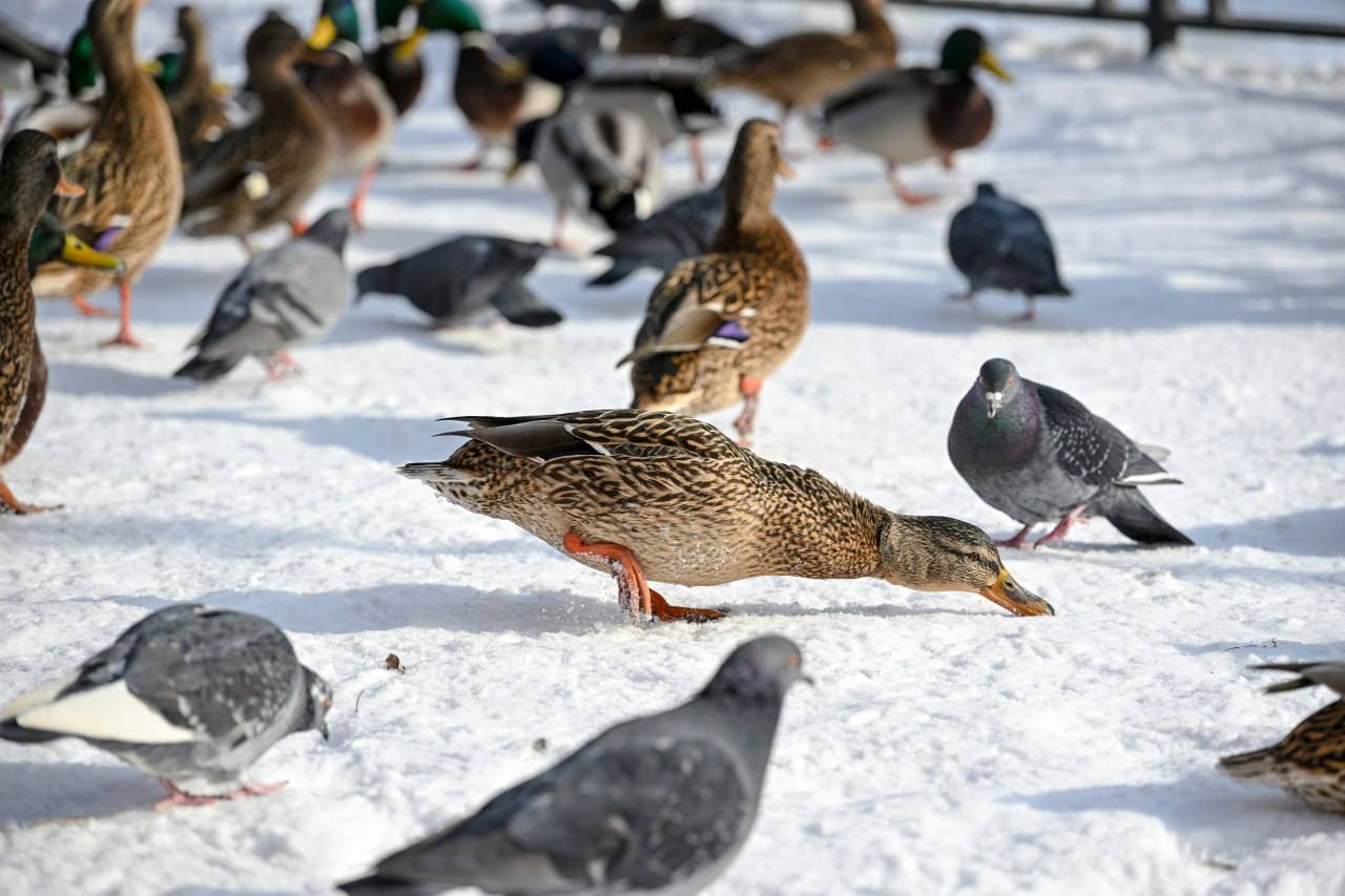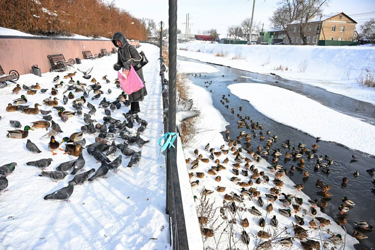 Каждый день в обед сюда приходит курянка Елена, чтобы покормить пернатых. Среди них есть и любимица - уточка с одной лапкой, которая уже второй год встречает её без опозданий.