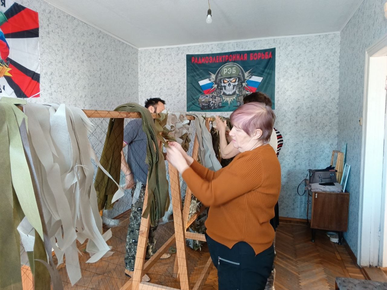 Четыре года назад началась специальная военная операция. Спустя несколько месяцев участники проекта «Курское долголетие» из города Щигры включились в волонтёрскую деятельность для помощи фронту. Они организовали мастерскую по плетению маскировочных сетей.