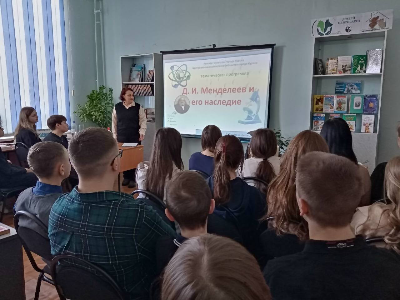 Ученики школы № 45 Курска посетили тематическую программу «Дмитрий Иванович Менделеев и его наследие» в библиотеке-филиале № 9.