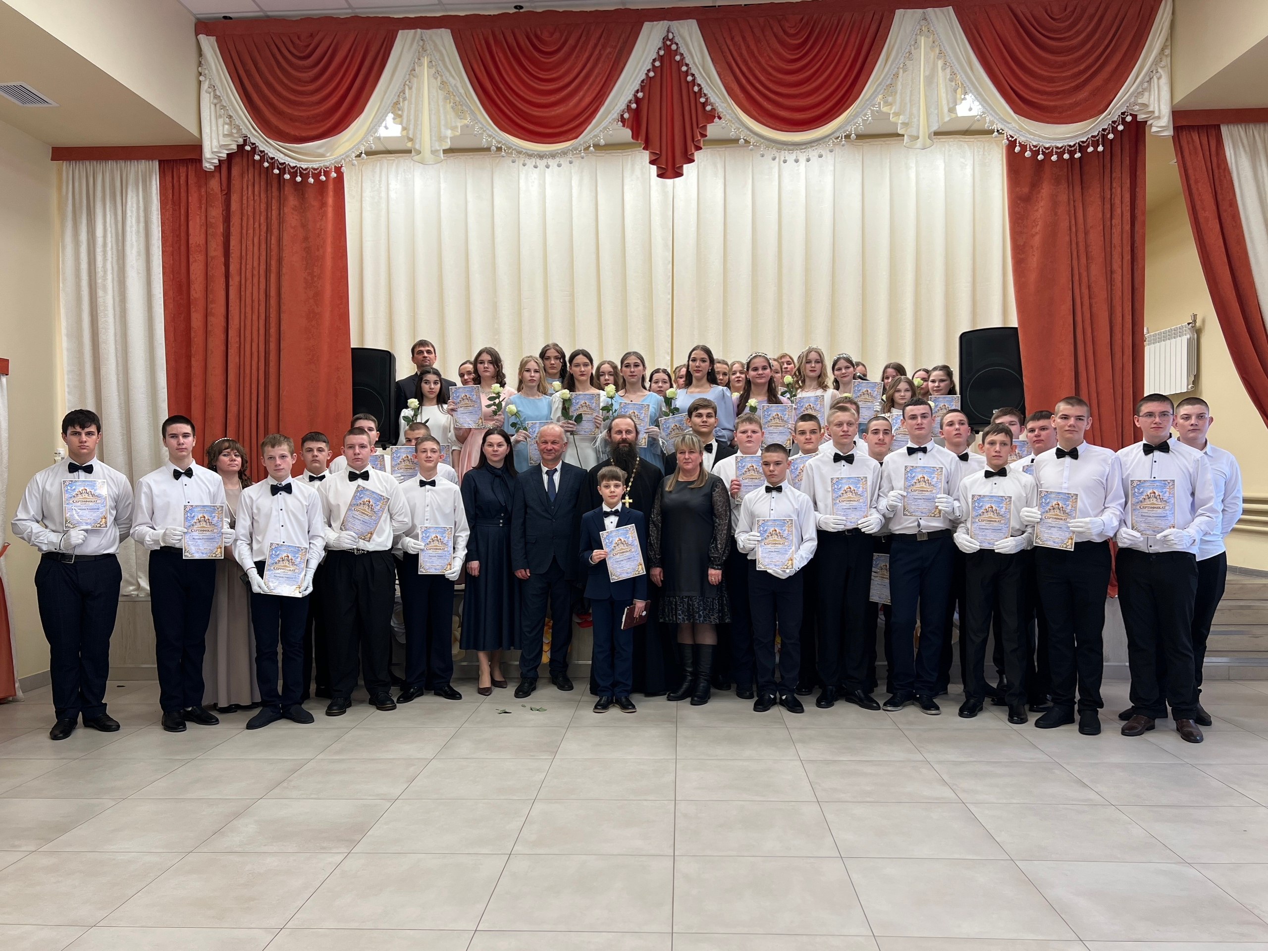 С приветственным словом к участникам бала также обратился Благочинный Горшеченского церковного округа, отец Евгений. Его речь, наполненная мудростью и духовностью, подчеркнула особое значение праздника Сретения Господня, напоминая о важности встречи, как в духовном, так и в жизненном плане. Отец Евгений пожелал молодым людям чистоты помыслов, стремления к добру и мудрости в их начинаниях, благословляя их на новый этап жизни.