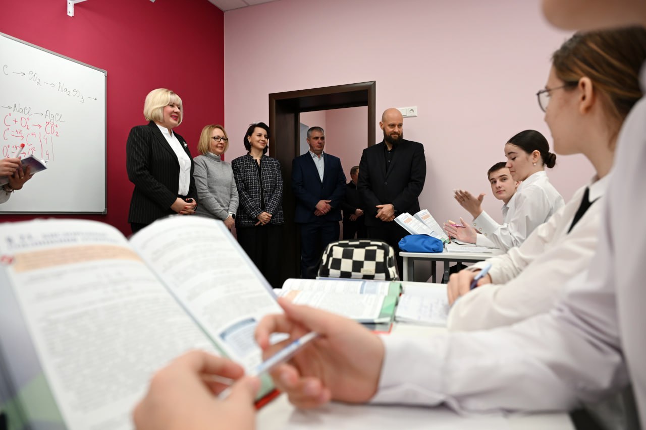 Заместитель губернатора Оксана Крутько и министр образования и науки региона Наталия Леонова по поручению губернатора Курской области Александра Хинштейна проверили, как организован учебный процесс в школах, открывшихся после капитального ремонта.