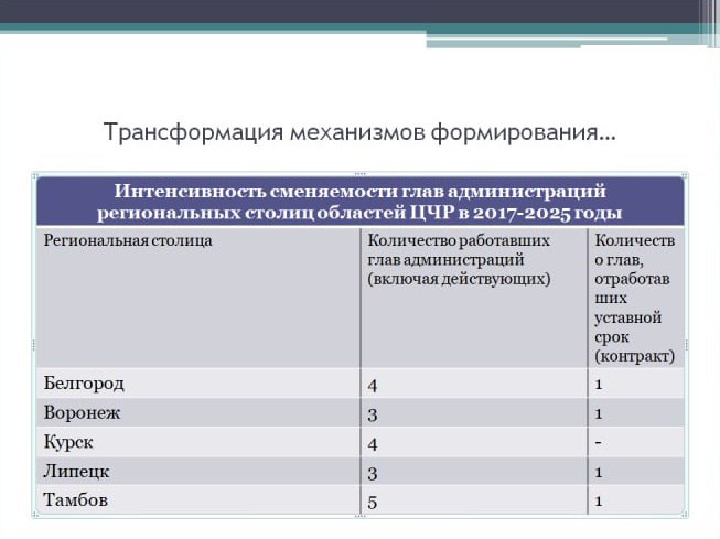 По словам Слатинова, «"мэрская чехарда" в административных центрах — характерная черта сложившейся системы управления в регионах». Он считает это печальным трендом.