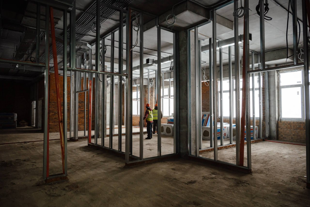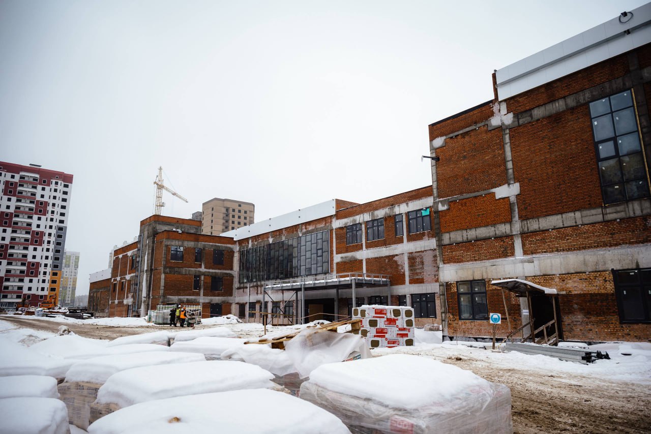 Ежедневно на стройплощадке работает 197 человек, на данный момент степень готовности школы — почти 50%.