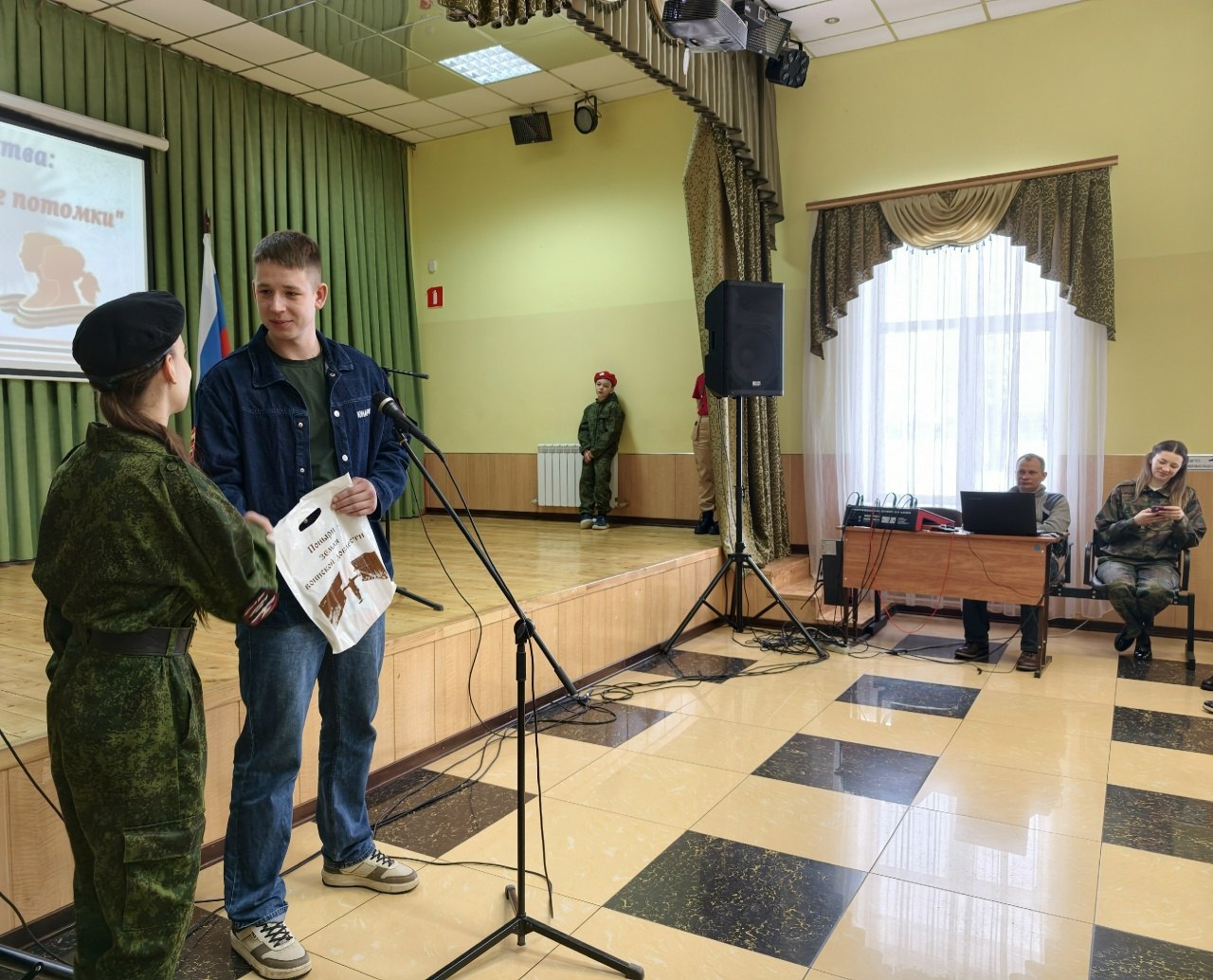 После общения с почетным гостем события переместились в физкультурно-оздоровительный комплекс поселка Поныри. Там команды юнармейцев приняли участие в военно-спортивной игре «Достойные потомки».