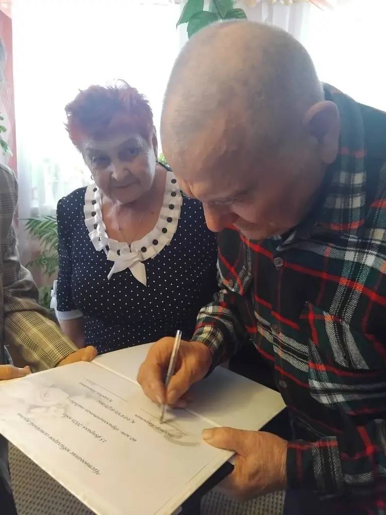 Особую торжественность моменту придало внесение имен юбиляров в «Книгу памятных событий» отдела ЗАГС. Этот символический жест перекликается с записями актов гражданского состояния, где полвека и более назад молодожены с трепетом ставили свои подписи, начиная совместный путь.
