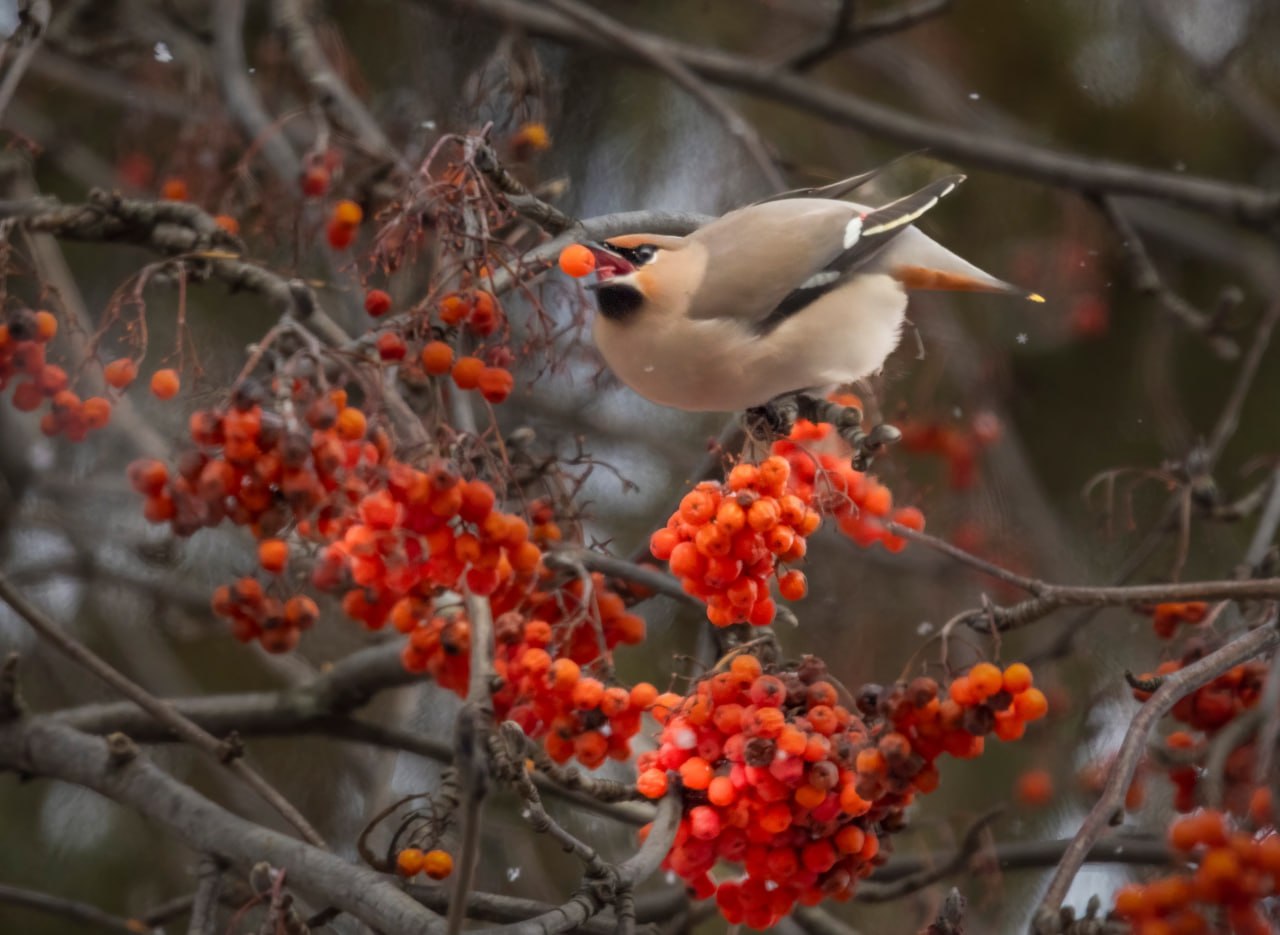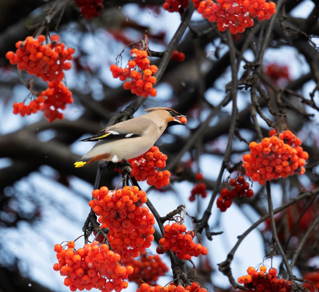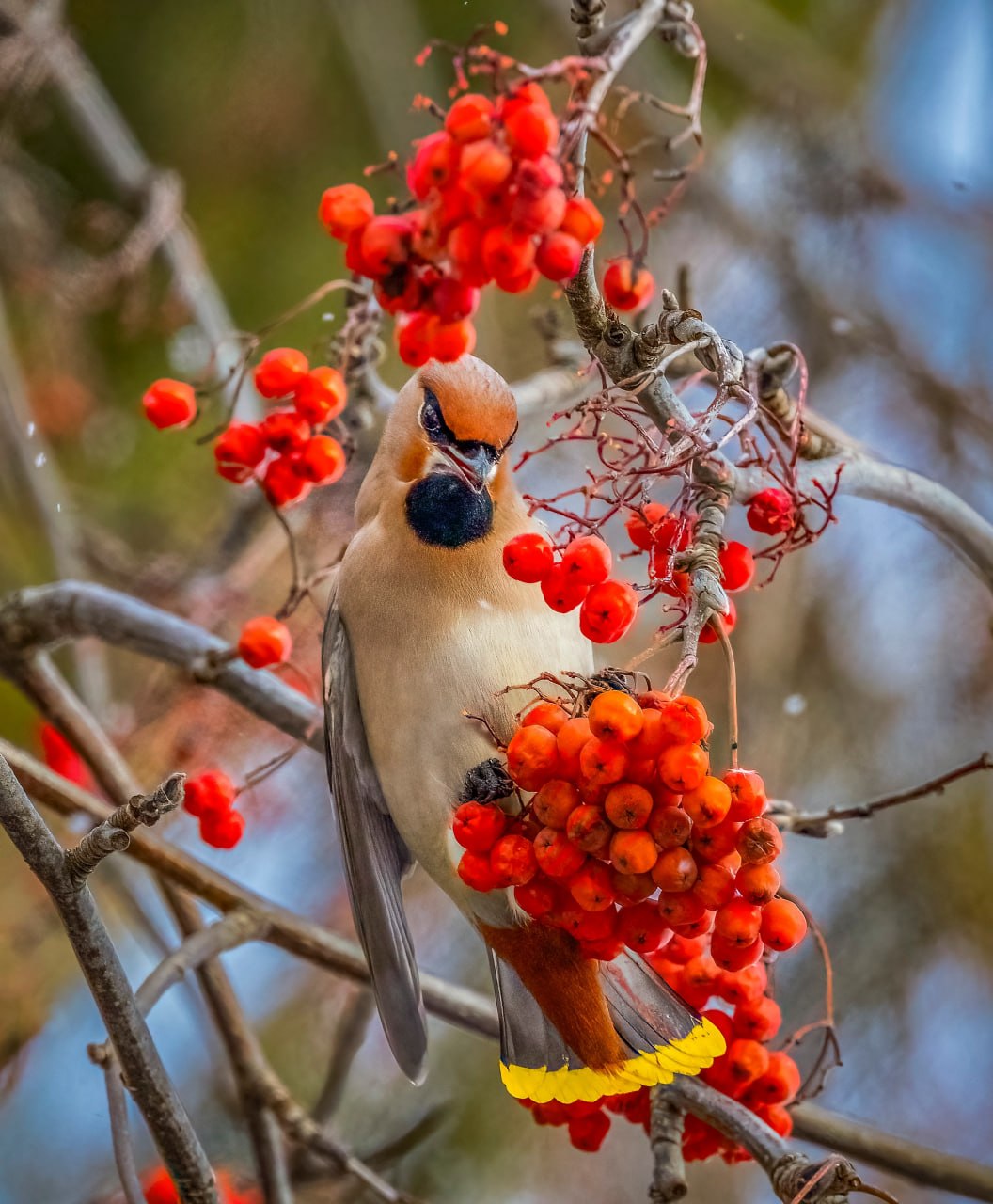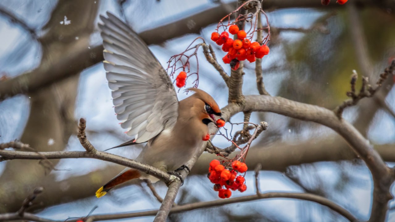 Фотоохотник Александр Попик поделился, что за этими птицами не нужно далеко ехать. Главное — иметь с собой фотоаппарат и обращать внимание на красные от ягод рябины.