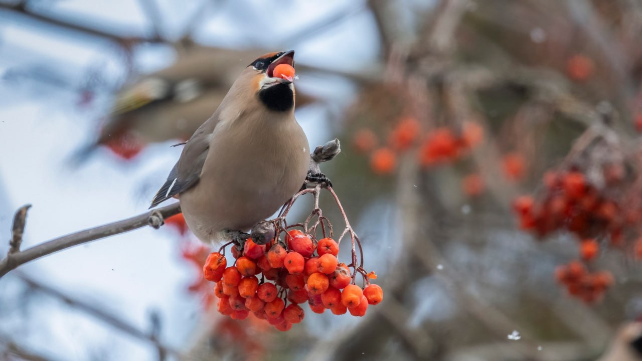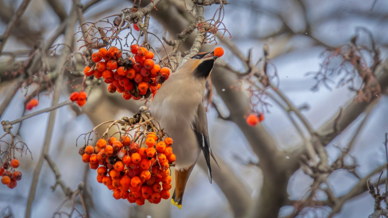 В Курске удалось запечатлеть на камеру пиршество свиристелей.