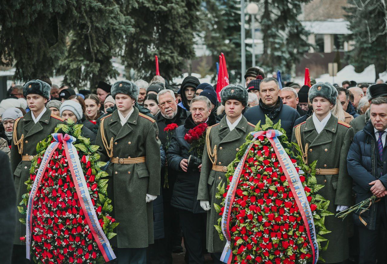 Венки и цветы к монументу "Скорбящая мать" и стелам с именами погибших воинов возложили министр внутренней политики Курской области Андрей Белоусов, исполняющий обязанности председателя Курской областной Думы Александр Кичигин, депутаты регионального парламента, ветераны, представители молодёжных организаций, духовенства, горожане.